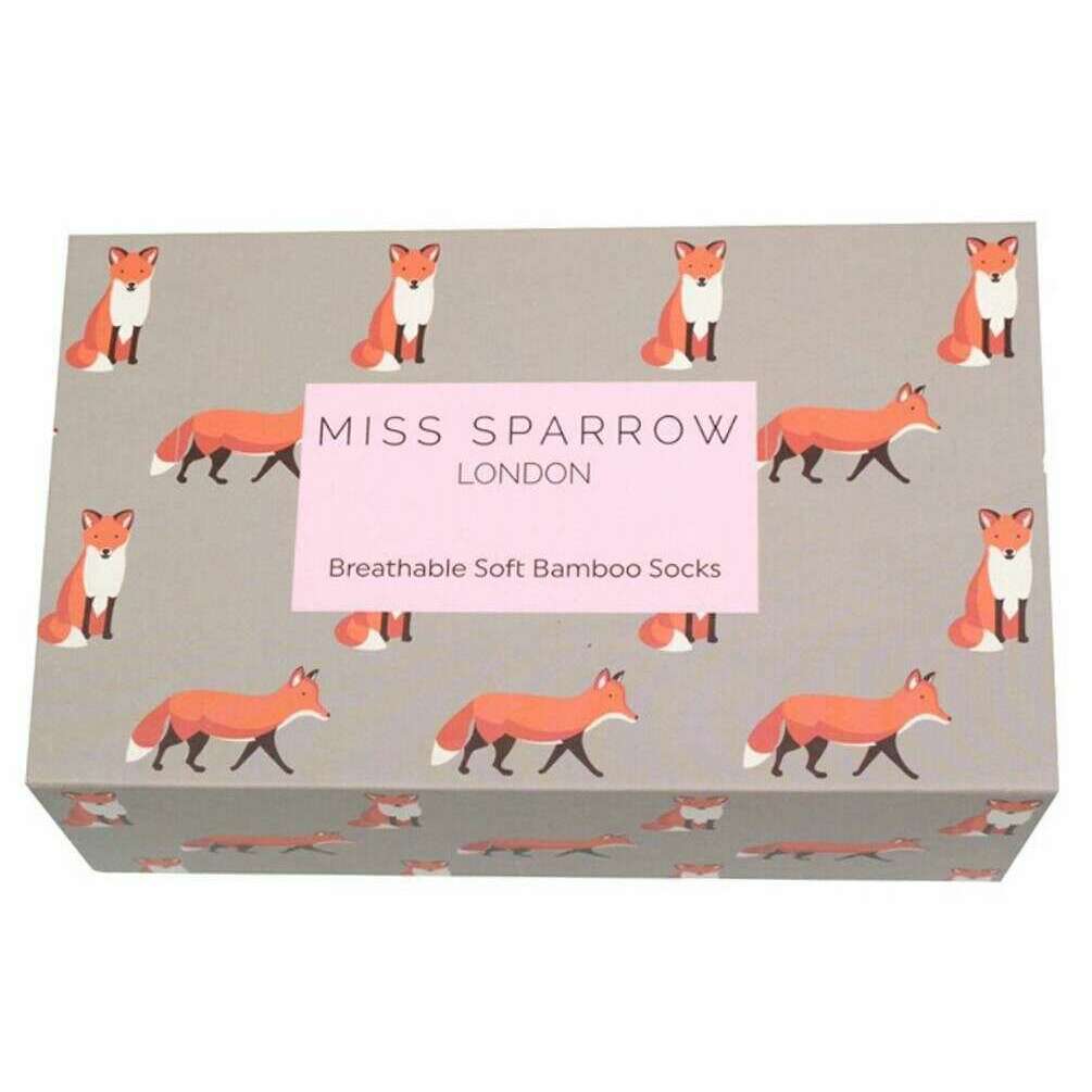 Miss Sparrow London 3er-Pack Füchse-Sockenbox – Grau/Grün/Gelb