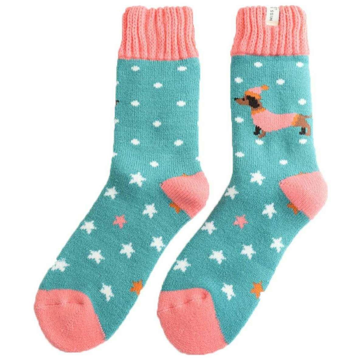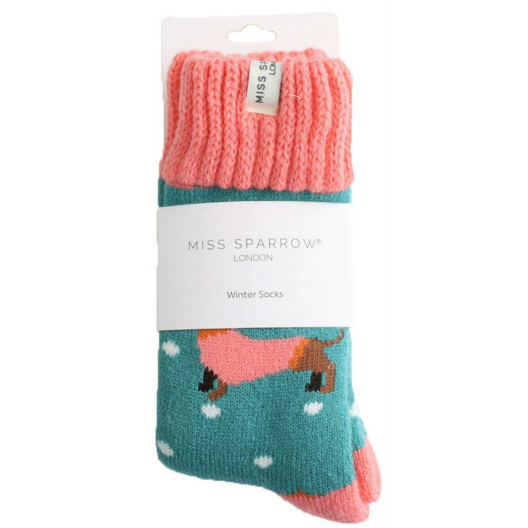 Miss Sparrow London Festliche Wursthunde-Wintersocken – Enteneiblau