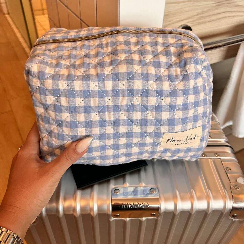 Diese gut verarbeitete große azurblaue Kosmetiktasche für Damen von Moon Nude ist in der Farbe Blau/Weiß erhältlich und besteht aus 100 % Baumwolle. Es misst 15 cm (Höhe) x 25 cm (Breite) x 15 cm (Tiefe). Es wird empfohlen, es von Hand in kaltem Wasser mit einem milden Reinigungsmittel zu waschen oder es im Schonwaschgang auf links zu waschen. um diese Tasche in gutem Zustand zu halten. Alle Taschen werden komplett in einer Moon-Nude-Verpackung geliefert. Die große Make-up-Tasche Moon Nude Azure – Blau/Weiß ist ein absolutes Muss für Ihr Zimmer oder Ihre Alltagstasche. Diese Make-up-Tasche bewahrt alle Ihre am häufigsten verwendeten Produkte garantiert sicher auf und ist mit ihrem handgefertigten Steppdesign gleichzeitig stilvoll und schick.