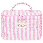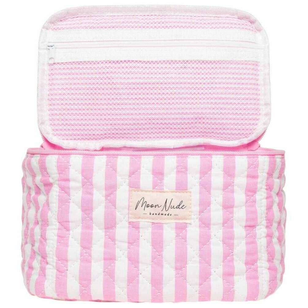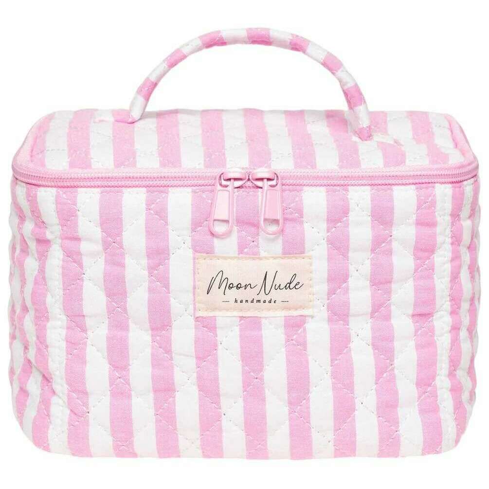 Diese Barbie-Kosmetiktasche von Moon Nude besteht aus 100 % rosafarbener Baumwolle und ist perfekt für Frauen und ein Muss. Es misst 16 cm (Höhe) x 22 cm (Breite) x 14 cm (Tiefe). Es wird empfohlen, es von Hand in kaltem Wasser mit einem milden Reinigungsmittel zu waschen oder es im Schonwaschgang auf links zu waschen. um diese Tasche in gutem Zustand zu halten. Alle Taschen werden komplett in einer Moon-Nude-Verpackung geliefert. Die Moon Nude Barbie Vanity Bag – Pink/Weiß ist ein absolutes Muss für Reisen oder den täglichen Gebrauch. Diese Kosmetiktasche bewahrt Ihr gesamtes Make-up oder Ihre Hautpflege garantiert an einem Ort auf und ist mit ihrem handgefertigten Steppdesign gleichzeitig stilvoll und modisch.