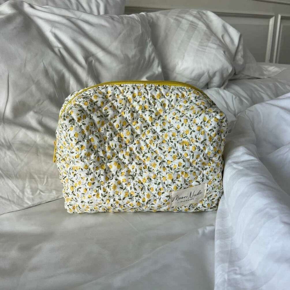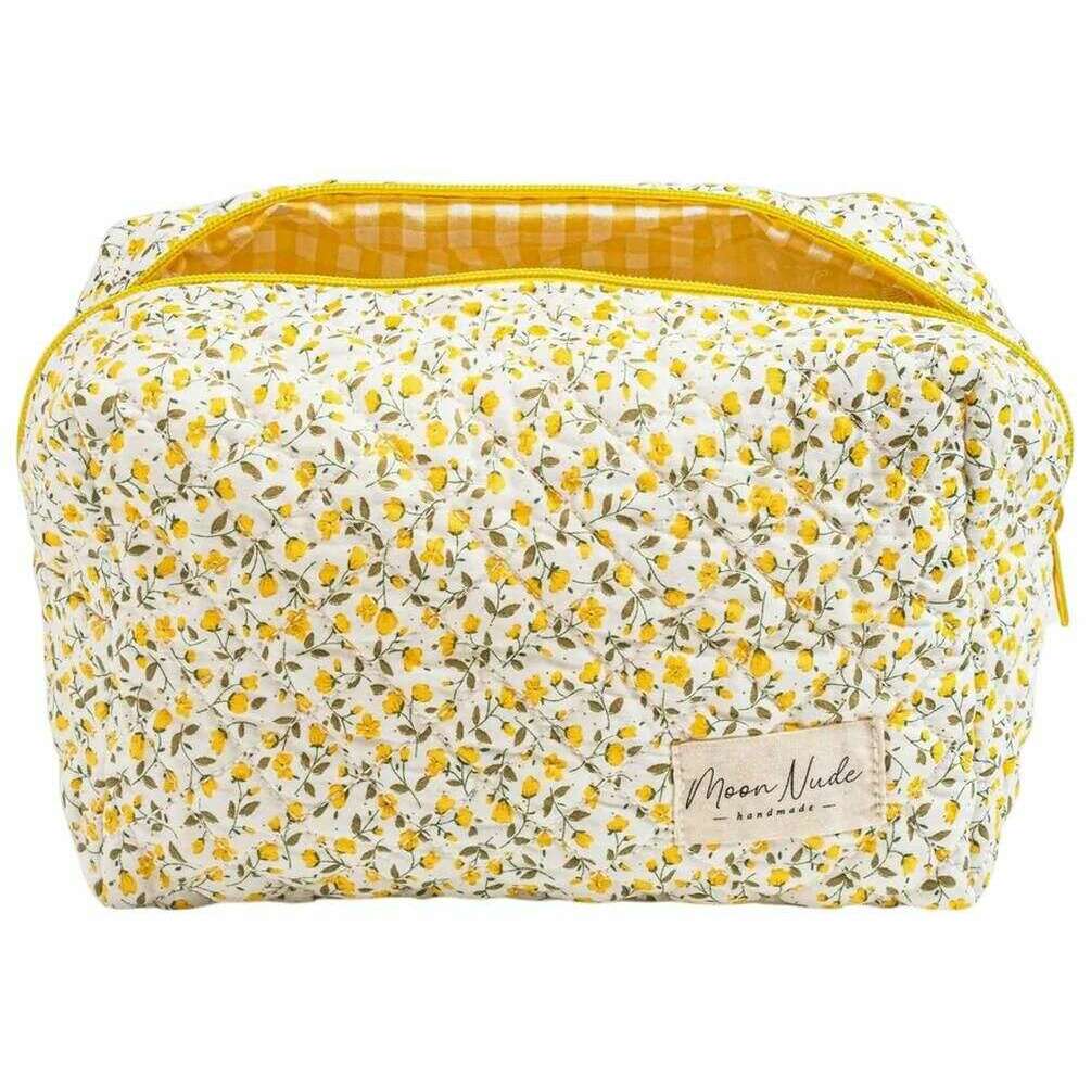 Moon Nude Buttercup Große Make-up-Tasche – Weiß/Gelb/Beige