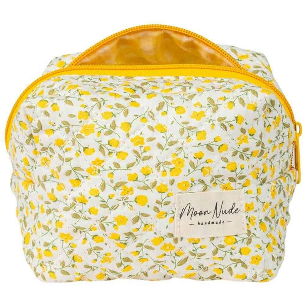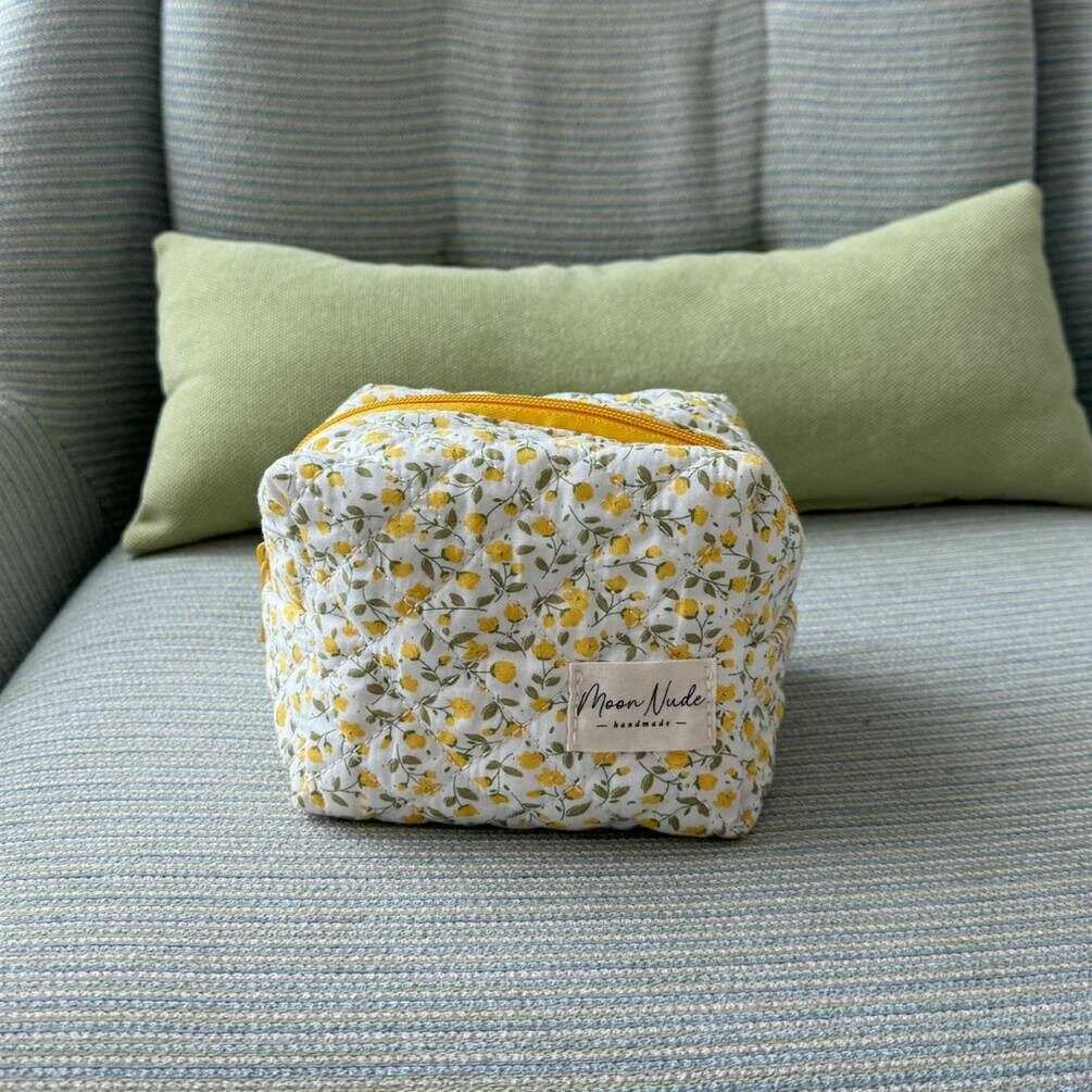 Aus 100 % Baumwolle gefertigt ist diese weiß/gelb/beige Buttercup-Mini-Make-up-Tasche für Damen des Designers Moon Nude. Es misst 13 cm (Höhe) x 15 cm (Breite) x 11 cm (Tiefe). Es wird empfohlen, es von Hand in kaltem Wasser mit einem milden Reinigungsmittel zu waschen oder es im Schonwaschgang auf links zu waschen. um diese Tasche in gutem Zustand zu halten. Alle Taschen werden komplett in einer Moon-Nude-Verpackung geliefert. Die Moon Nude Buttercup Mini-Make-up-Tasche – Weiß/Gelb/Beige ist ein absolutes Muss für Ihr Zimmer oder Ihre Alltagstasche. Diese Make-up-Tasche bewahrt alle Ihre am häufigsten verwendeten Produkte garantiert sicher auf und ist mit ihrem handgefertigten Steppdesign gleichzeitig stilvoll und schick.