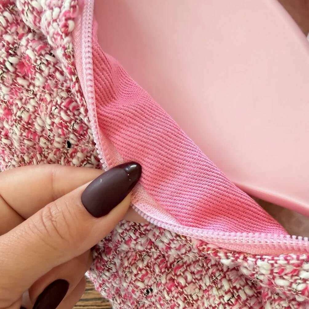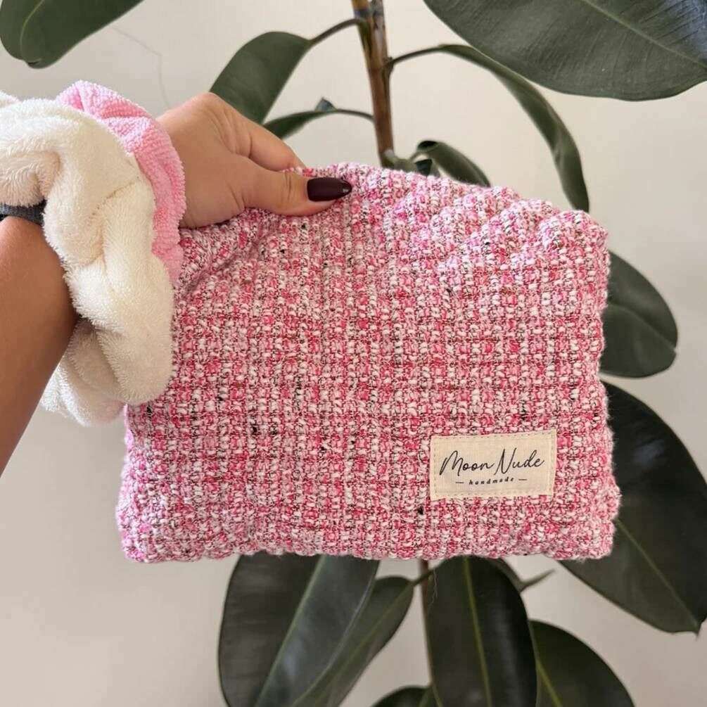Wir stellen Ihnen diese große Kamelien-Make-up-Tasche für Damen von Moon Nude vor. Sie besteht aus 100 % Baumwolle in der Farbe Rosa/Weiß. Es misst 15 cm (Höhe) x 25 cm (Breite) x 15 cm (Tiefe). Es wird empfohlen, es von Hand in kaltem Wasser mit einem milden Reinigungsmittel zu waschen oder es im Schonwaschgang auf links zu waschen. um diese Tasche in gutem Zustand zu halten. Alle Taschen werden komplett in einer Moon-Nude-Verpackung geliefert. Die große Make-up-Tasche Moon Nude Camellia – Pink/Weiß ist ein absolutes Muss für Ihr Zimmer oder Ihre Alltagstasche. Diese Make-up-Tasche bewahrt alle Ihre am häufigsten verwendeten Produkte garantiert sicher auf und ist mit ihrem handgefertigten Steppdesign gleichzeitig stilvoll und schick.