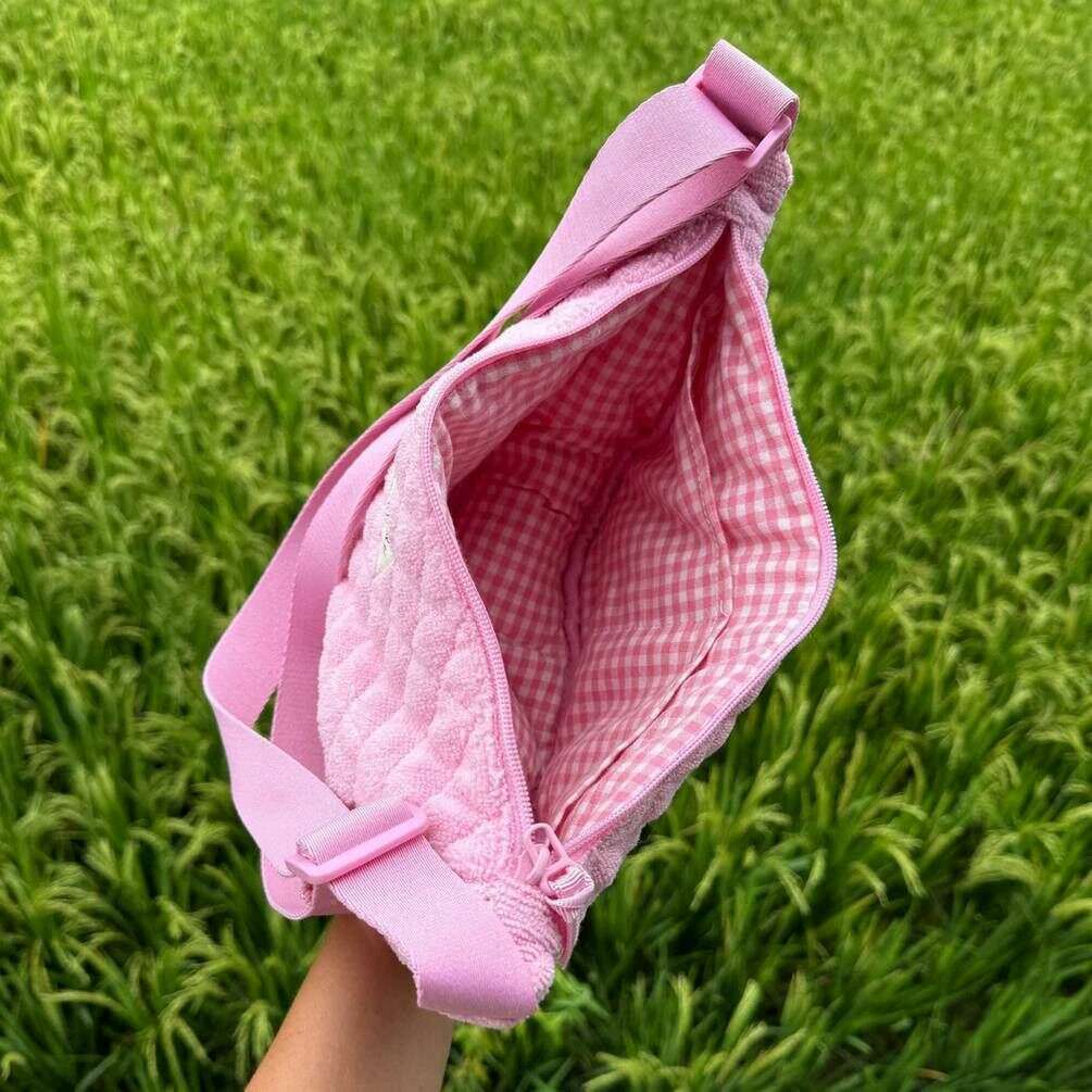 Aus 100 % Baumwolle gefertigt ist diese rosafarbene Candy-Mini-Umhängetasche für Damen des Designers Moon Nude. Es misst 17 cm (Höhe) x 28 cm (Breite) x 10 cm (Tiefe). Es wird empfohlen, es von Hand in kaltem Wasser mit einem milden Reinigungsmittel zu waschen oder es im Schonwaschgang auf links zu waschen. um diese Tasche in gutem Zustand zu halten. Alle Taschen werden komplett in einer Moon-Nude-Verpackung geliefert. Die Moon Nude Candy Mini-Umhängetasche – Pink verfügt über ein wunderschönes handgefertigtes Steppdesign. Perfekt für unterwegs, sei es zu einem besonderen Anlass oder für den täglichen Gebrauch. Diese Umhängetasche verfügt über einen Reißverschluss zur Sicherheit, einen verstellbaren Riemen für Komfort und Innentaschen für mehr Komfort.