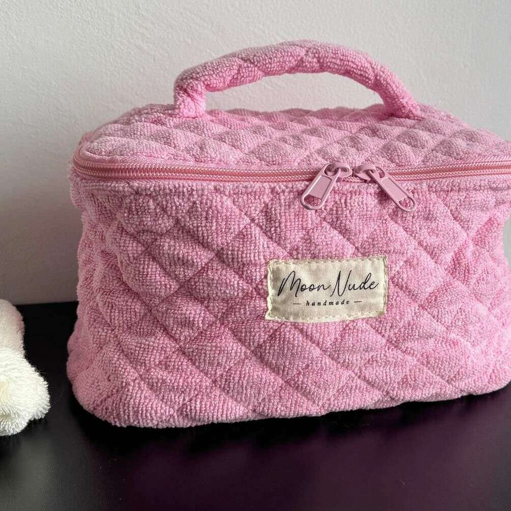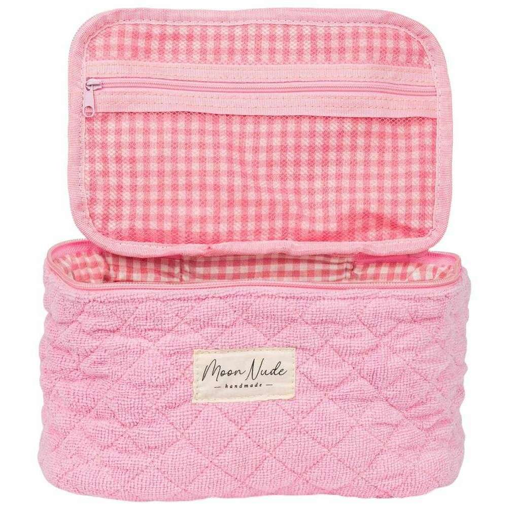 Diese gut verarbeitete Candy-Kosmetiktasche für Damen von Moon Nude ist in der Farbe Rosa erhältlich und besteht aus 100 % Baumwolle. Es misst 16 cm (Höhe) x 22 cm (Breite) x 14 cm (Tiefe). Es wird empfohlen, es von Hand in kaltem Wasser mit einem milden Reinigungsmittel zu waschen oder es im Schonwaschgang auf links zu waschen. um diese Tasche in gutem Zustand zu halten. Alle Taschen werden komplett in einer Moon-Nude-Verpackung geliefert. Die Moon Nude Candy Vanity Bag – Pink ist ein absolutes Muss auf Reisen oder im Alltag. Diese Kosmetiktasche bewahrt Ihr gesamtes Make-up oder Ihre Hautpflege garantiert an einem Ort auf und ist mit ihrem handgefertigten Steppdesign gleichzeitig stilvoll und modisch.