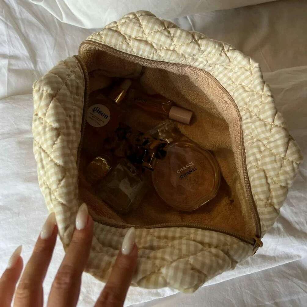 Perfekt für Frauen ist diese große Kosmetiktasche Moon Nude in Creme/Beige, sie besteht ebenfalls aus 100 % Baumwolle. Es misst 15 cm (Höhe) x 25 cm (Breite) x 15 cm (Tiefe). Es wird empfohlen, es von Hand in kaltem Wasser mit einem milden Reinigungsmittel zu waschen oder es im Schonwaschgang auf links zu waschen. um diese Tasche in gutem Zustand zu halten. Alle Taschen werden komplett in einer Moon-Nude-Verpackung geliefert. Die große Make-up-Tasche Moon Nude – Creme/Beige ist ein absolutes Muss für Ihr Zimmer oder Ihre Alltagstasche. Diese Make-up-Tasche bewahrt alle Ihre am häufigsten verwendeten Produkte garantiert sicher auf und ist mit ihrem handgefertigten Steppdesign gleichzeitig stilvoll und schick.