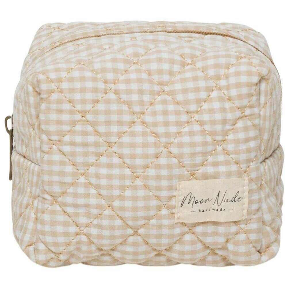 Perfekt für Frauen ist diese creme/beige Mini-Kosmetiktasche von Moon Nude, sie besteht ebenfalls aus 100 % Baumwolle. Es misst 13 cm (Höhe) x 15 cm (Breite) x 11 cm (Tiefe). Es wird empfohlen, es von Hand in kaltem Wasser mit einem milden Reinigungsmittel zu waschen oder es im Schonwaschgang auf links zu waschen. um diese Tasche in gutem Zustand zu halten. Alle Taschen werden komplett in einer Moon-Nude-Verpackung geliefert. Die Moon Nude Mini-Make-up-Tasche – Creme/Beige ist ein absolutes Muss für Ihr Zimmer oder Ihre Alltagstasche. Diese Make-up-Tasche bewahrt alle Ihre am häufigsten verwendeten Produkte garantiert sicher auf und ist mit ihrem handgefertigten Steppdesign gleichzeitig stilvoll und schick.