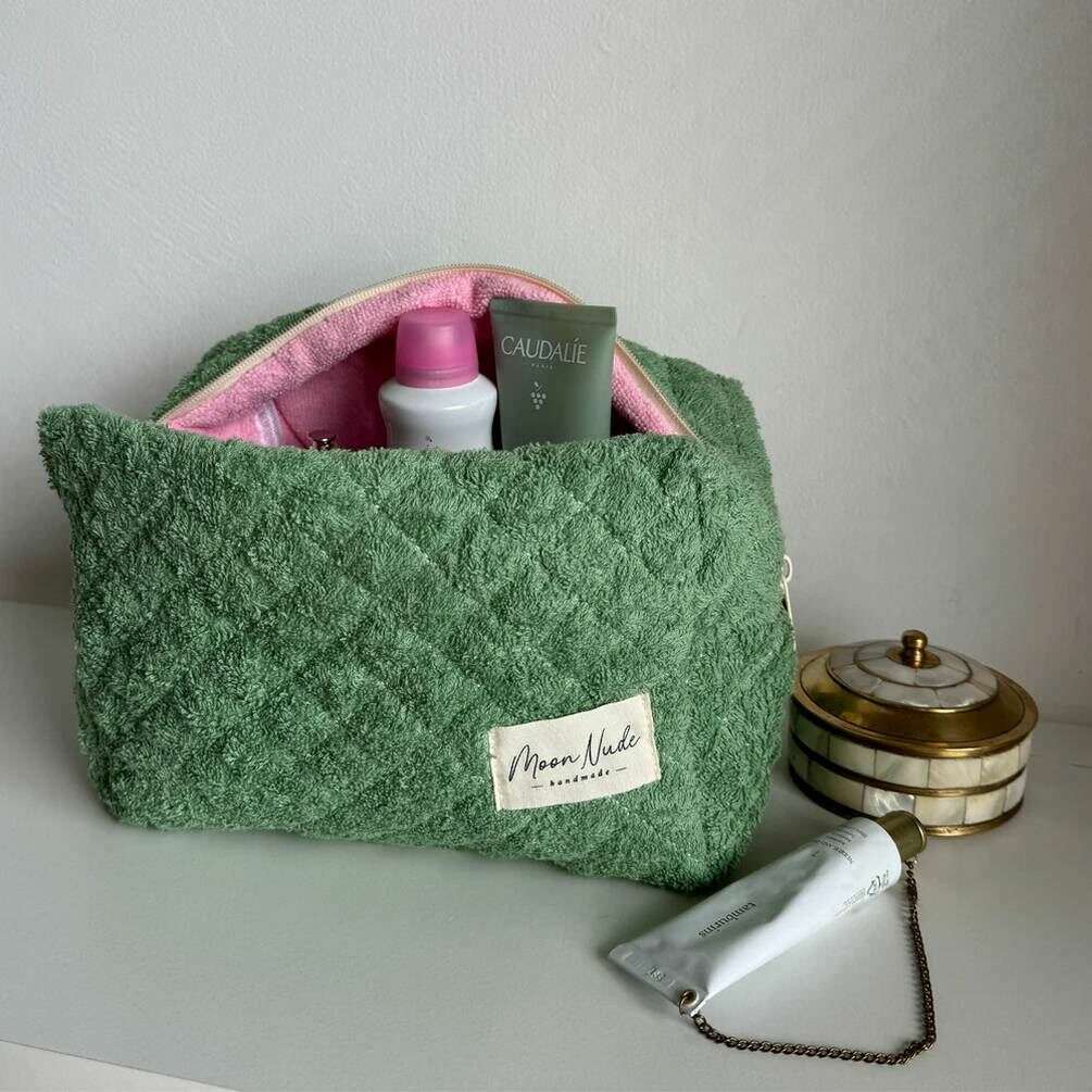 Moon Nude Olive Große Make-up-Tasche – Grün/Rosa