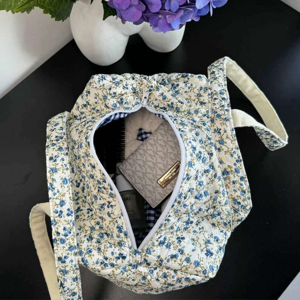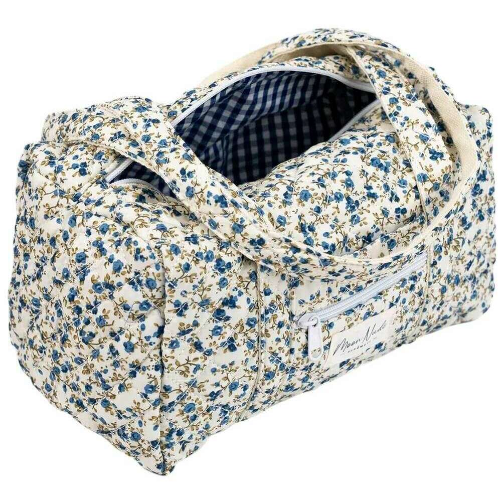 Diese blau/grüne Frühlings-Mini-Reisetasche für Damen wird von der Marke Moon Nude präsentiert und besteht aus 100 % Baumwolle. Es misst 18 cm (Höhe) x 31 cm (Breite) x 18 cm (Tiefe). Es wird empfohlen, es von Hand in kaltem Wasser mit einem milden Reinigungsmittel zu waschen oder es im Schonwaschgang auf links zu waschen. um diese Tasche in gutem Zustand zu halten. Alle Taschen werden komplett in einer Moon-Nude-Verpackung geliefert. Die Moon Nude Spring Mini Duffel Bag – Blau/Grün verfügt über ein wunderschönes handgefertigtes Steppdesign. Diese Tasche verfügt über eine Außentasche mit Reißverschluss, einen geräumigen Innenraum und zwei große Griffe, perfekt als lässige Ausgehtasche oder als Geschenk.