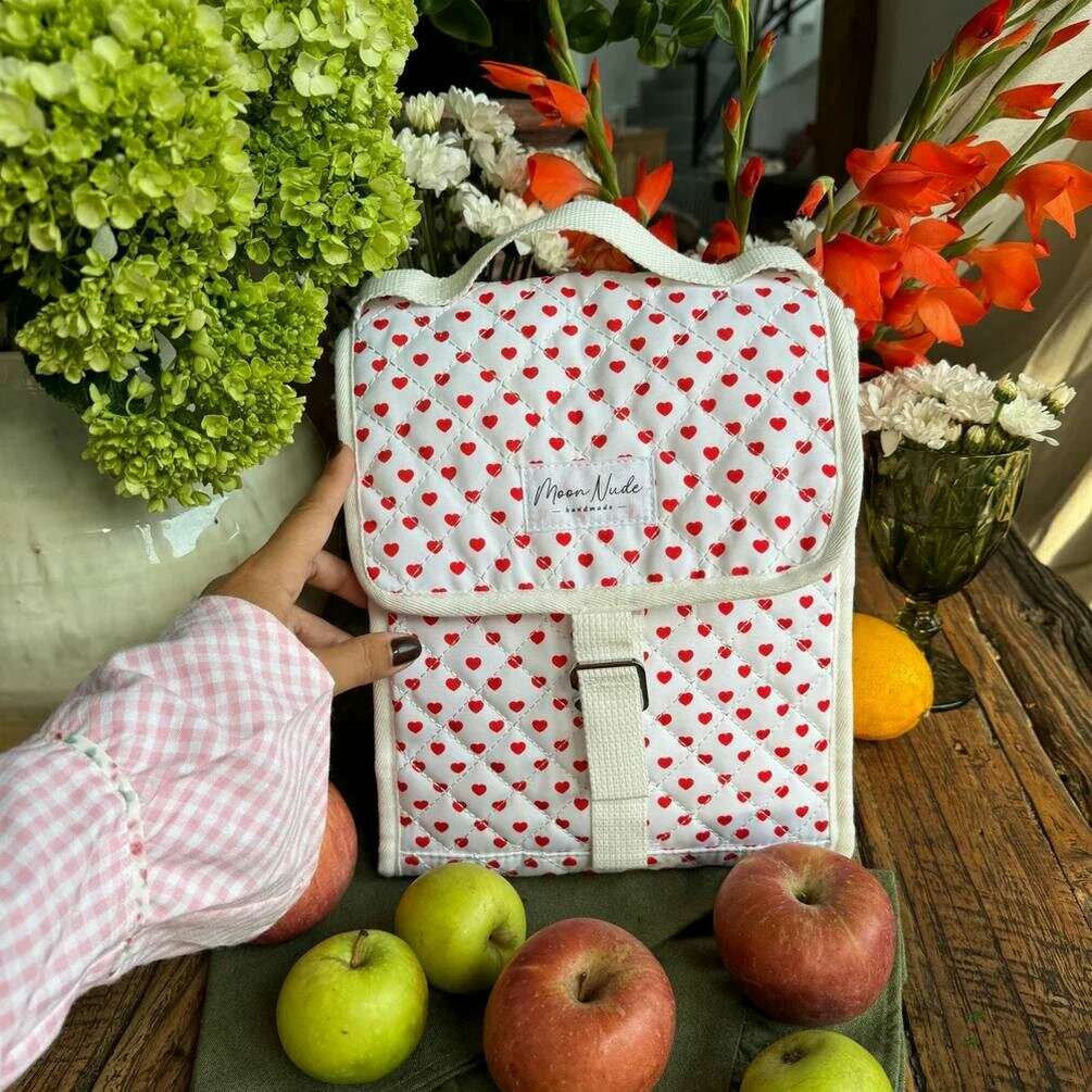 Designer Moon Nude hat Ihnen diese Damentasche aus 100 % Baumwolle in Weiß-/Rottönen präsentiert. Es misst 28 cm (Höhe) x 22,5 cm (Breite) x 17,5 cm (Tiefe). Es wird empfohlen, es von Hand in kaltem Wasser mit einem milden Reinigungsmittel zu waschen oder es im Schonwaschgang auf links zu waschen. um diese Tasche in gutem Zustand zu halten. Alle Taschen werden komplett in einer Moon-Nude-Verpackung geliefert. Die Moon Nude Valentine Lunch Bag – Weiß/Rot ist ein Muss auf dem Weg zur Arbeit oder für das Mittagessen der Kinder. Diese Lunchtasche hat eine isolierte Innenseite, sodass Ihre heißen Sachen heiß und Ihre kalten Sachen kalt bleiben! Diese Tasche verfügt außerdem über ein wunderschönes handgefertigtes Steppdesign, das garantiert die Aufmerksamkeit aller Menschen auf sich zieht, die Sie kennen.