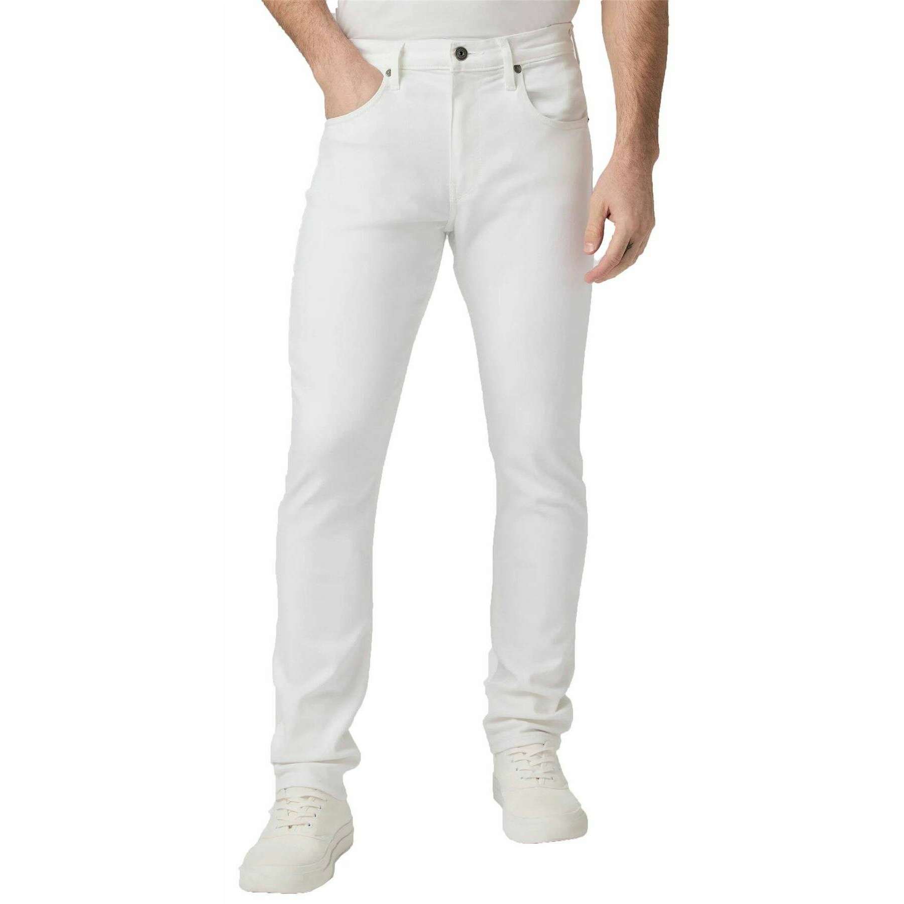 Wir stellen Ihnen diese Lennox Slim-Jeans für Herren von PAIGE vor. Sie bestehen aus 54 % Viskose, 26 % Baumwolle, 17 % Polyester und 3 % Elasthan in der Farbe Eiskappenweiß. Auch die weißen Icecap-Jeans haben ein schlichtes Muster. Es wird empfohlen, das Kleidungsstück auf links zu drehen, kaltes Wasser im Schonwaschgang zu verwenden und zum Trocknen aufzuhängen, um diese Jeans in gutem Zustand zu halten. Alle Jeans werden komplett mit Paige-Tags geliefert. Die PAIGE Lennox Slim Jeans – Icecap White wurden aus dem berühmten Denim Transcend gefertigt, der sehr beliebt und beliebt ist. Dieses vielseitige Slim-Fit-Paar, das vom Knie abwärts schmaler wird, kann auf unzählige Arten gestylt werden und ist ein Muss in Ihrer Sammlung. Das hochelastische Material sorgt für höchsten Komfort und ein perfektes Alltagsoutfit.