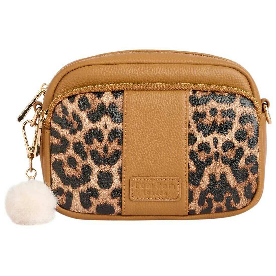 Pom Pom London Original Umhängetasche mit Leopardenmuster – Ahornbraun