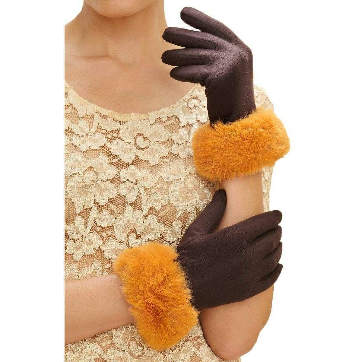 Pulver Bettina -Handschuhe - Schokoladenbraun/Mustard Gelb