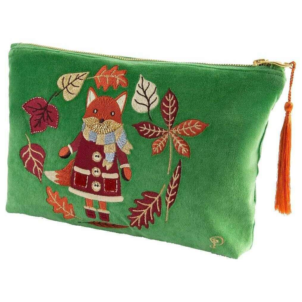 Pulver gemütlicher Fuchs Velvet Reißverschlussbeutel - Farngrün