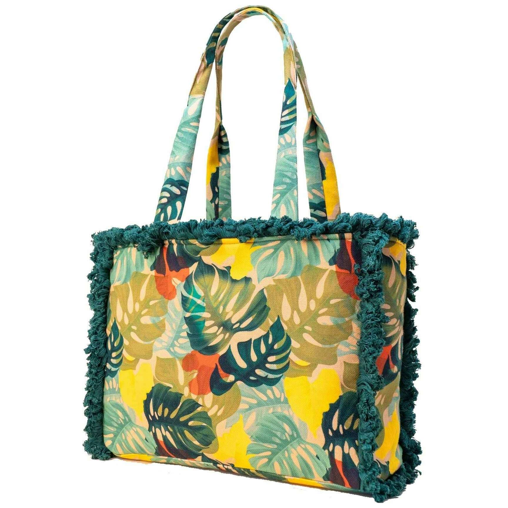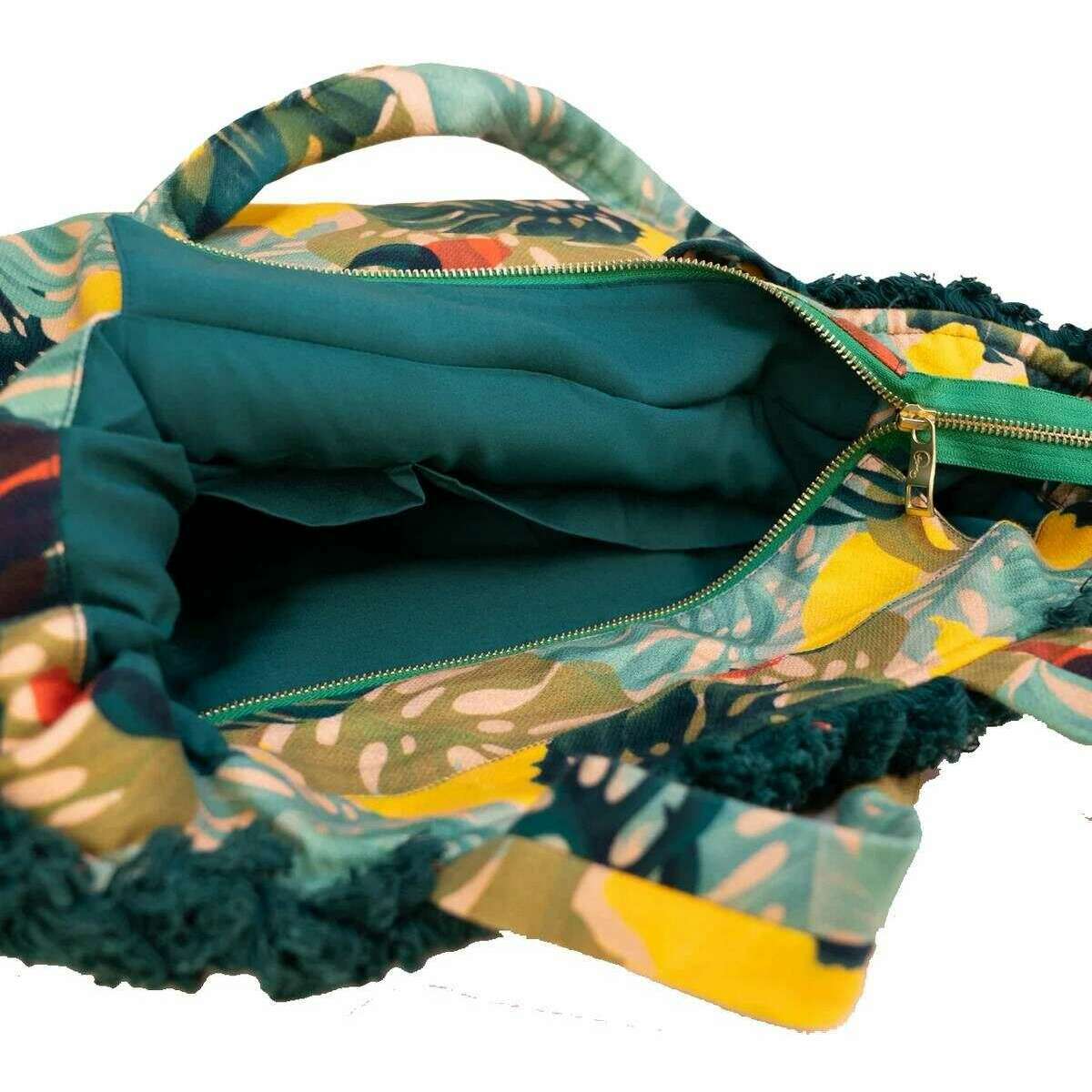 • Zwei Tragegriffe, strapazierfähiges Material, Hauptfach, Fransendesign