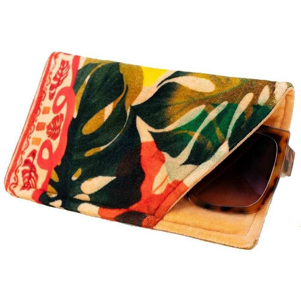 Powder Exotic Leaves Samt-Sonnenbrillenbeutel – Beige/Rot/Grün