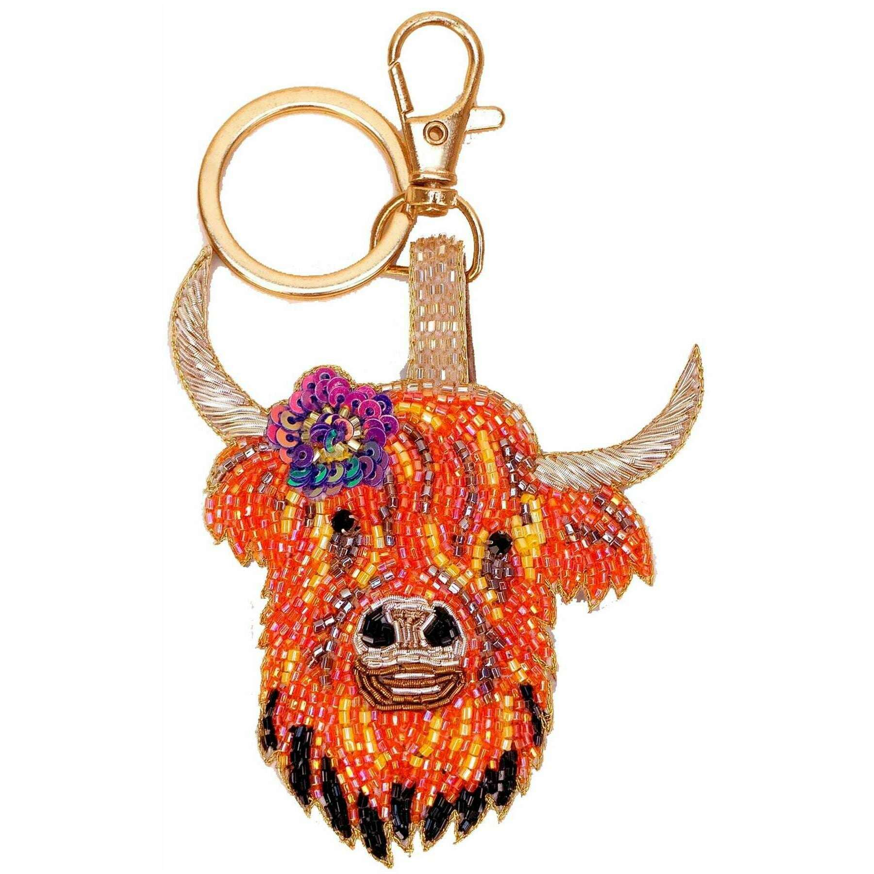 Powder Highland Cow Perlen-Schlüsselanhänger – Creme/Orange/Schwarz