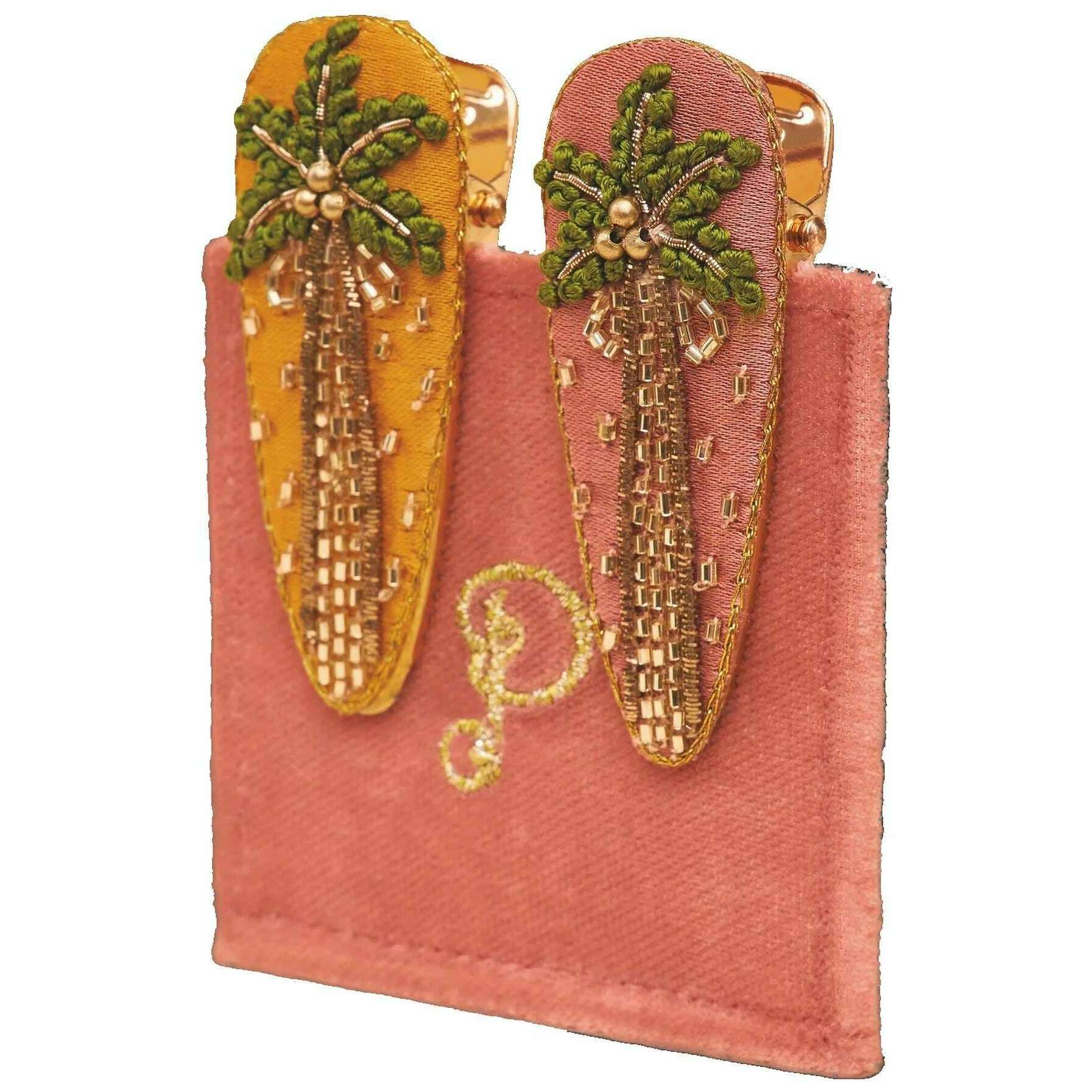 Puderpalmen-Haarspangen – Rosa/Grün/Orange