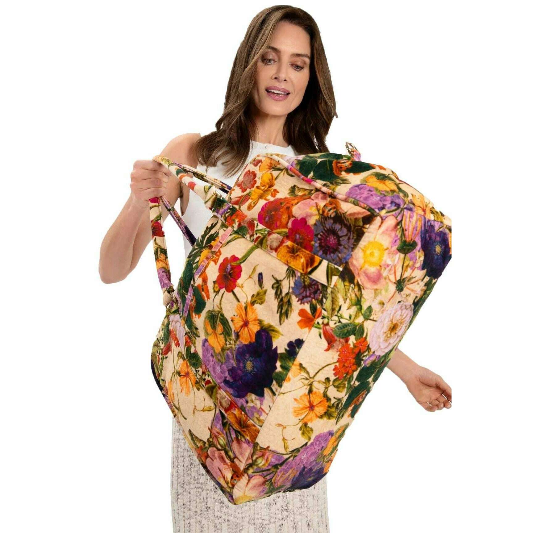 Diese Cream Women's Posy Luxe Weekender -Tasche wird von 100% Baumwoll -Samt zu Ihnen gebracht. Es misst 42 cm (Höhe) x 31 cm (Breite) x 18 cm (Tiefe). Alle Taschen sind mit Pulver -Tags ausgestattet. Die Powder Posy Luxe Weekender Bag - Creme ist eine praktische und vielfältige Tasche, die perfekt für Wochenenden oder Reisen ist. Das atemberaubende Design verleiht ein zeitloses Flair, und der Zwillingspflicht und die langen verstellbaren Schultergurt machen es zu einem bequemen Tragen. Dieses Stück bietet einen optimalen Speicher mit seinem großen Hauptfach und der Außentasche für alle kleineren wichtigen Wesentlichen.