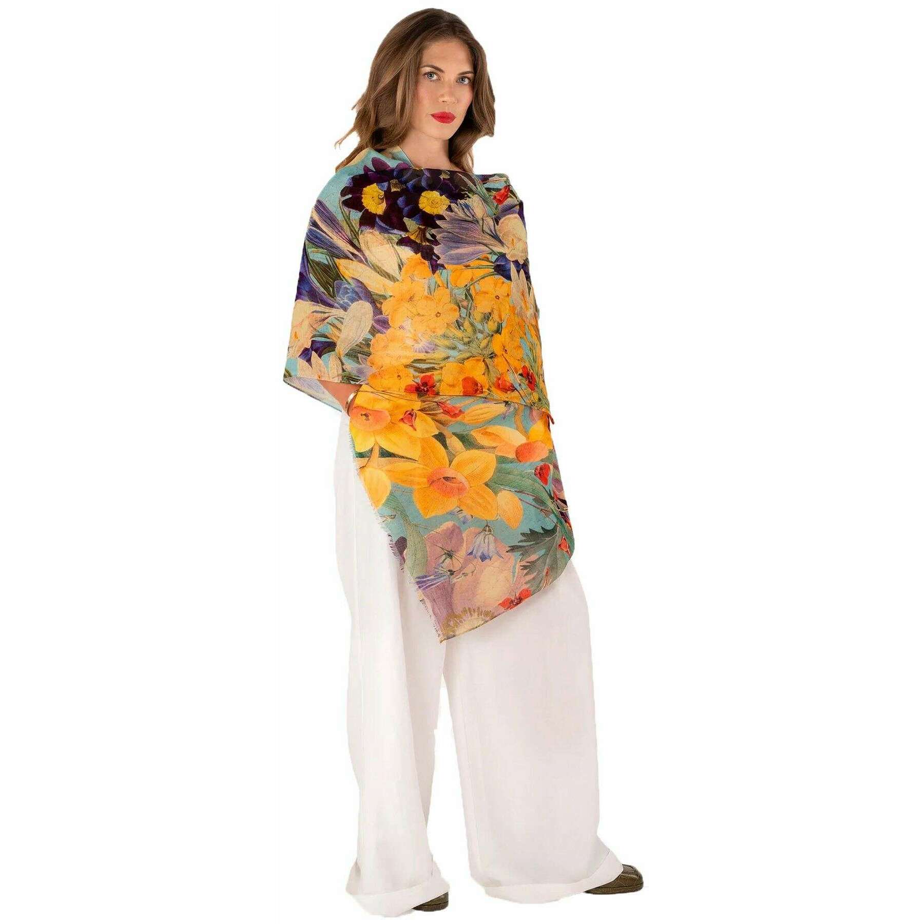 Powder Spring Flora Leinen-Baumwollschal – Gelb/Blau/Beige