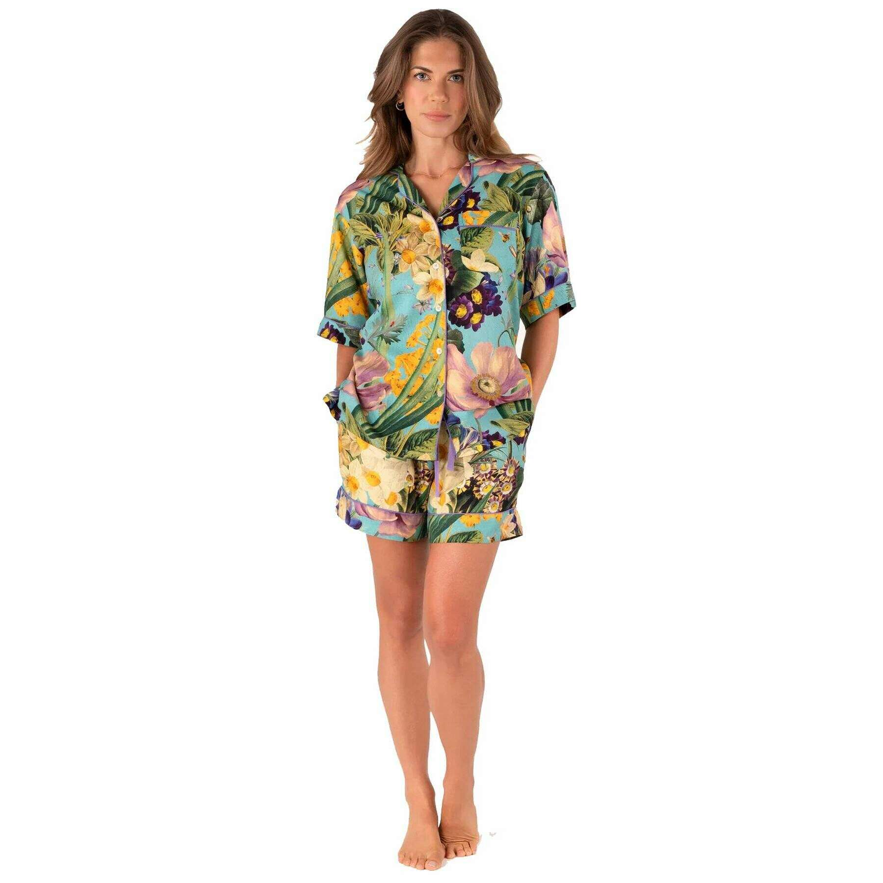 Kurzer Pyjama „Powder Spring Flora“ – Blau/Grün/Gelb