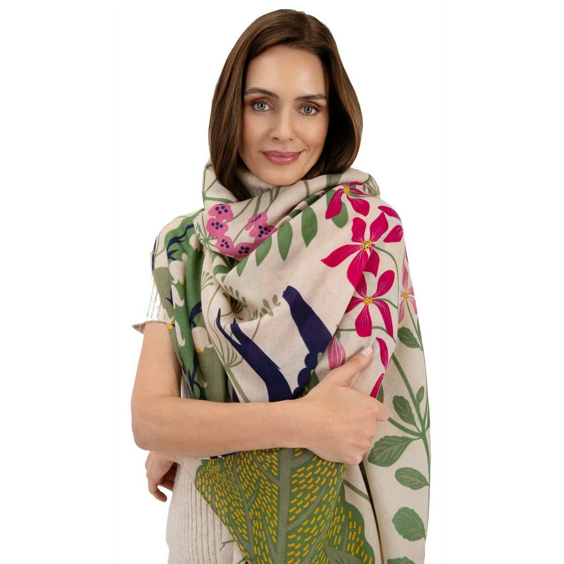 Designerpulver hat Ihnen den 100% igen Polyesterschal dieser Frauen mit Cremtönen gebracht. Es misst 182 cm (Höhe) x 98 cm (Breite). Auch der cremefarbene Schal ist in einem einzigartigen Muster ausgelegt. Es wird empfohlen, nur zu waschen, nicht zu bügeln, nicht trocken zu stürzen und nicht zu reinigen, um diesen Schal in gutem Zustand zu halten. Alle Schals sind mit Pulver -Tags ausgestattet. Der Pulver Swoping Swallows Print Scal - Creme verfügt über einen maßgeschneiderten Druck, der sicher die perfekte Ergänzung ist, um Ihre Kleidung abzuschließen. Mit einer wunderschönen glatten Textur und einer herbstlichen Palette hält dieser luxuriöse Schal Sie warm und in völliger Raffinesse eingewickelt.
