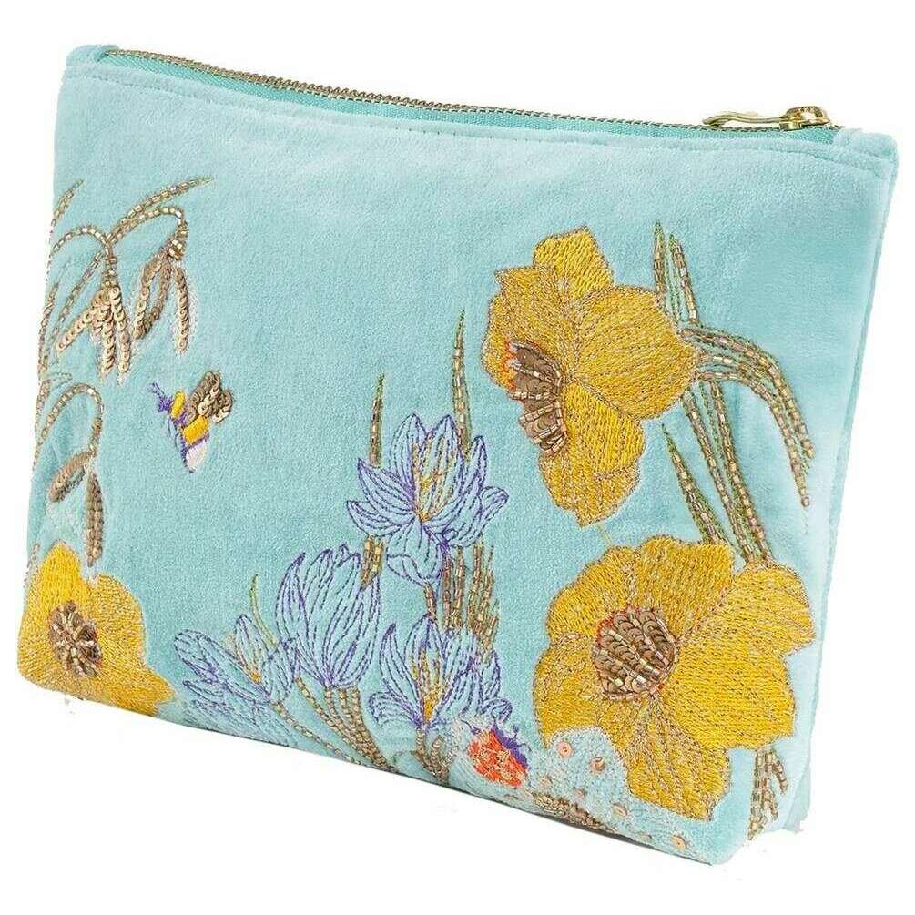 Powder Wildflower Meadow Mittelgroße bestickte Reißverschlusstasche – Gelb/Blau/Beige