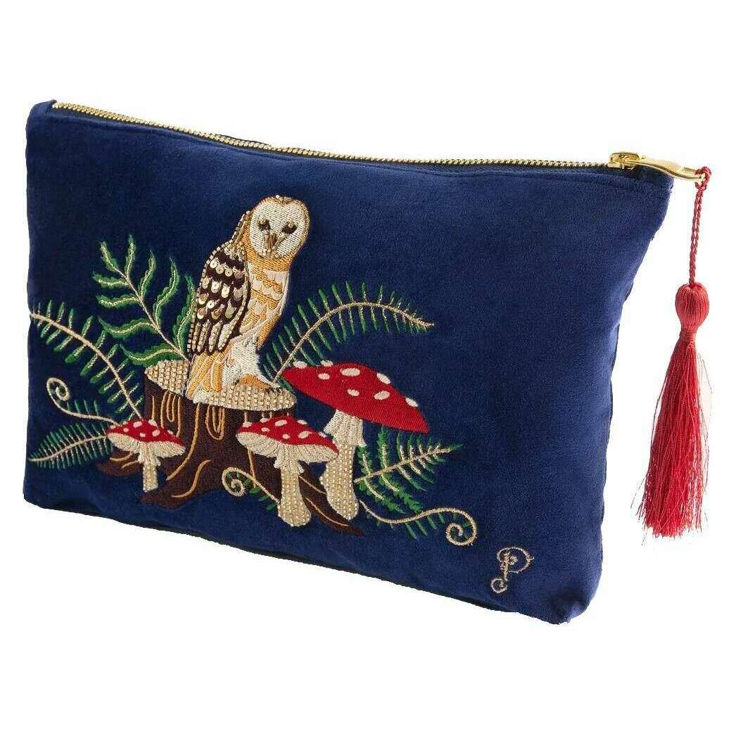 Pulver Woodland Owl Velvet Reißverschlussbeutel - Marine