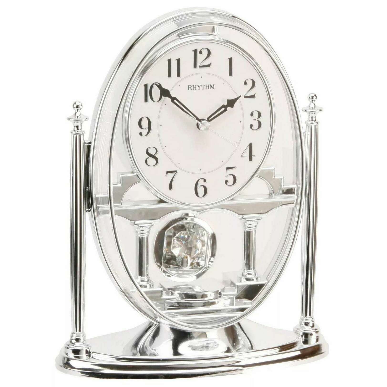 Rhythmus-Pendel- und Acryldekorations-Kaminuhr – Silber
