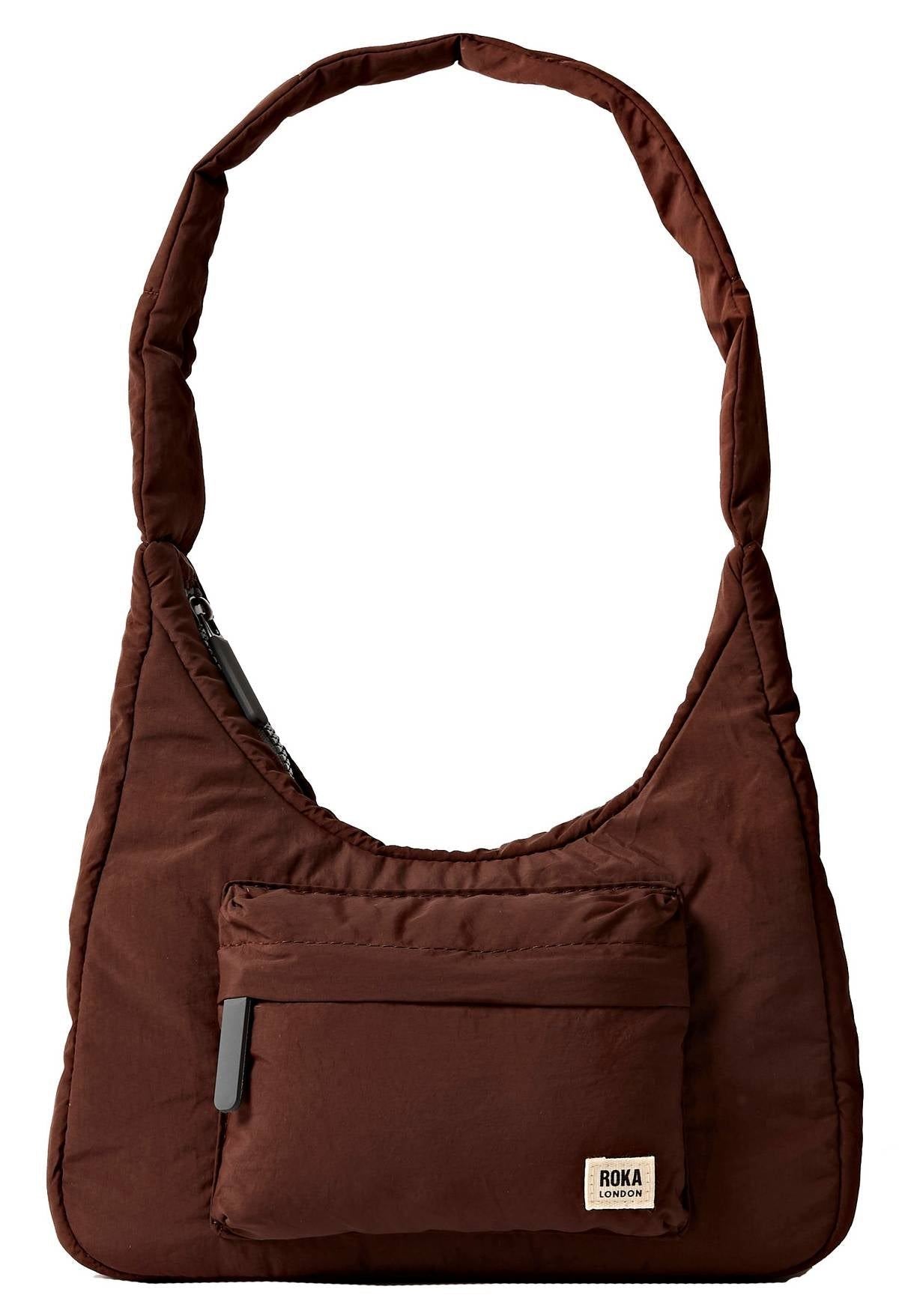 Roka Kleine Belsize-Handtasche aus recyceltem Taslon – Schokoladenbraun