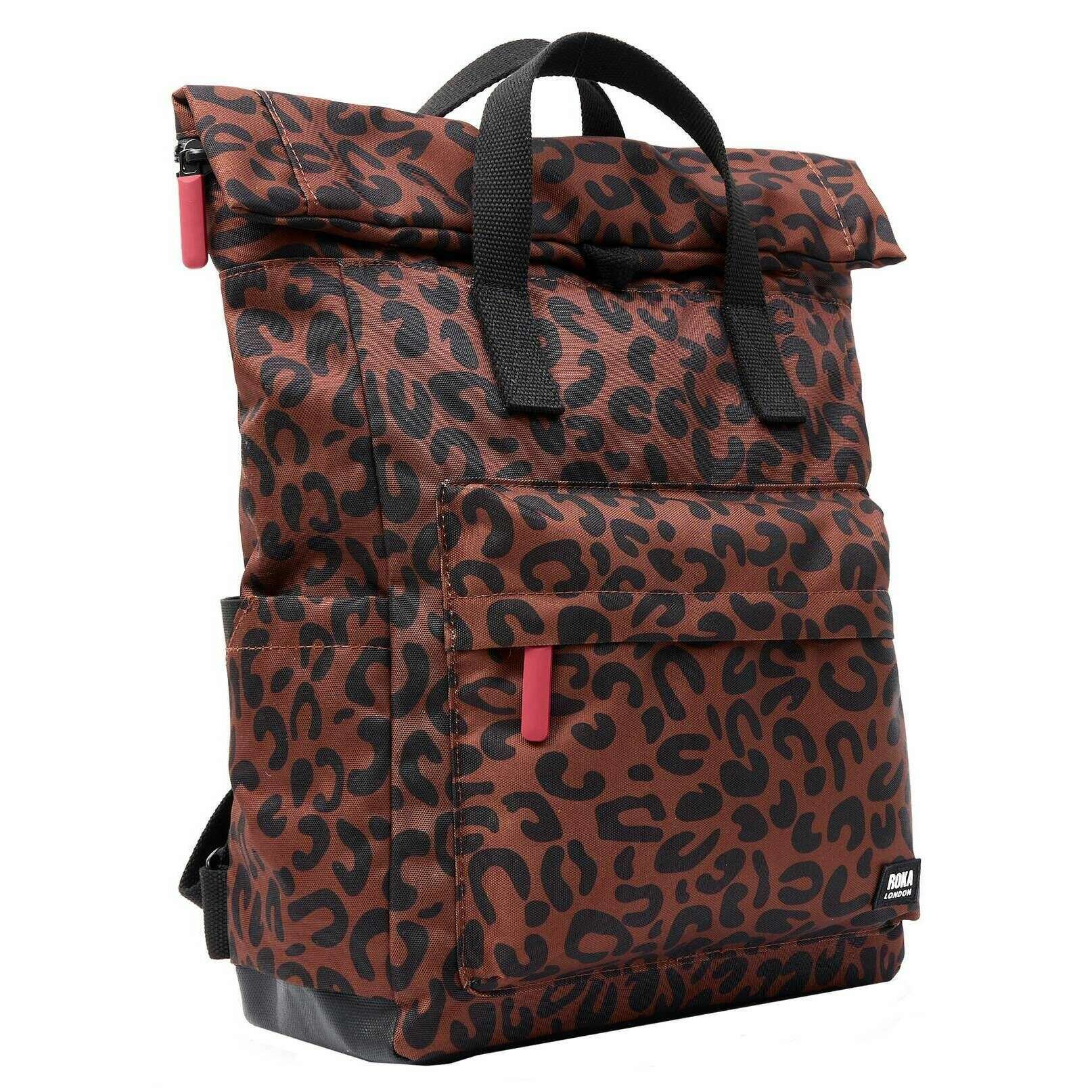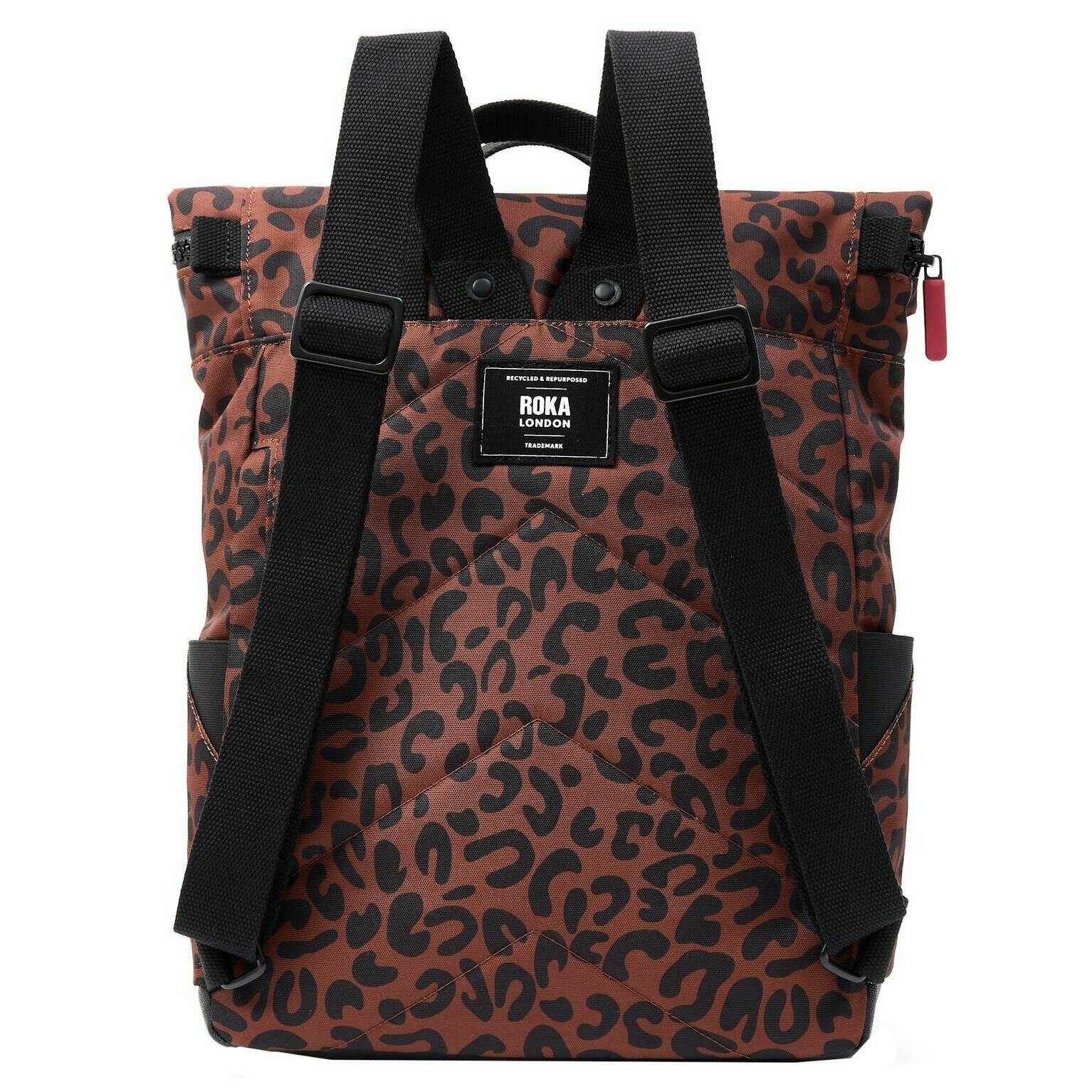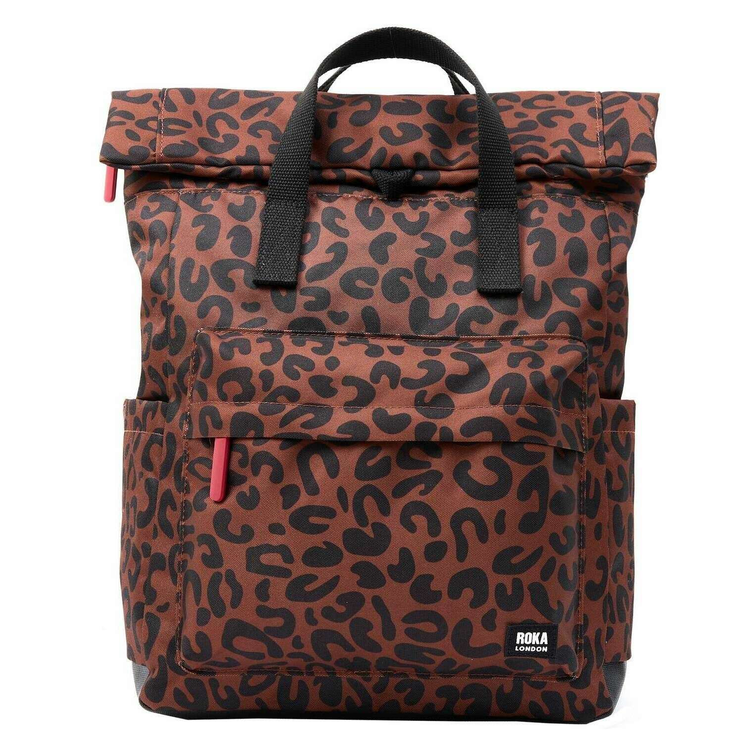 Roka Canfield B Mittelgroßer Rucksack aus recyceltem Canvas – Scarlet Leopard