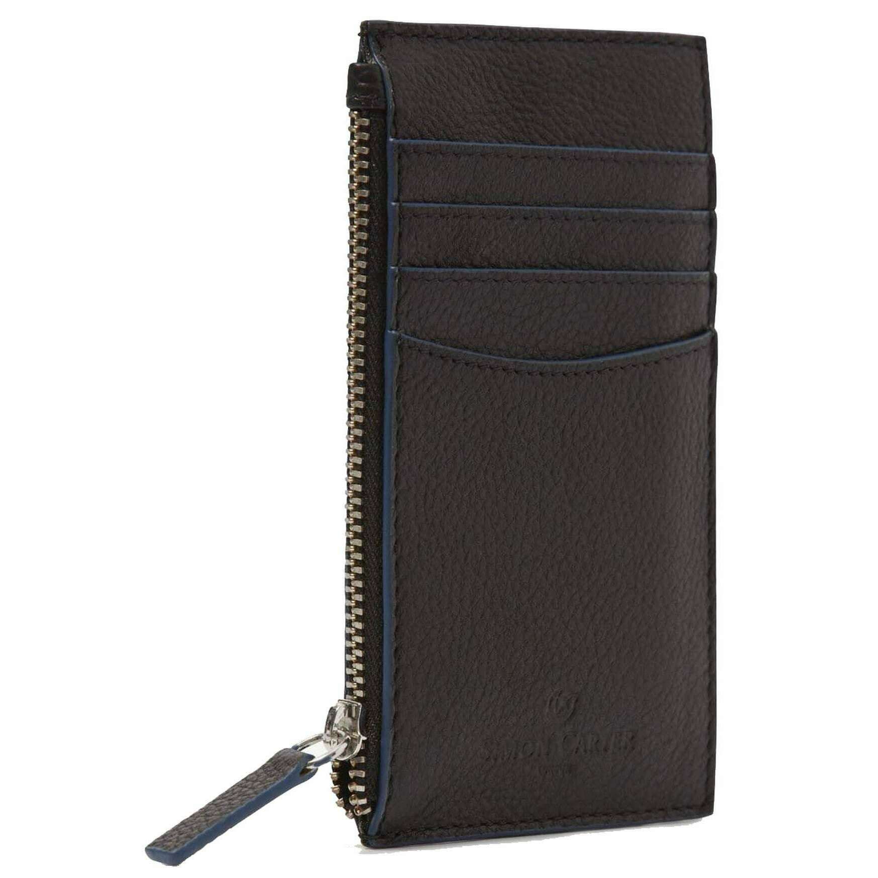Simon Carter Kreditkartenetui mit kontrastierendem Rand und Reißverschluss – Schwarz/Blau