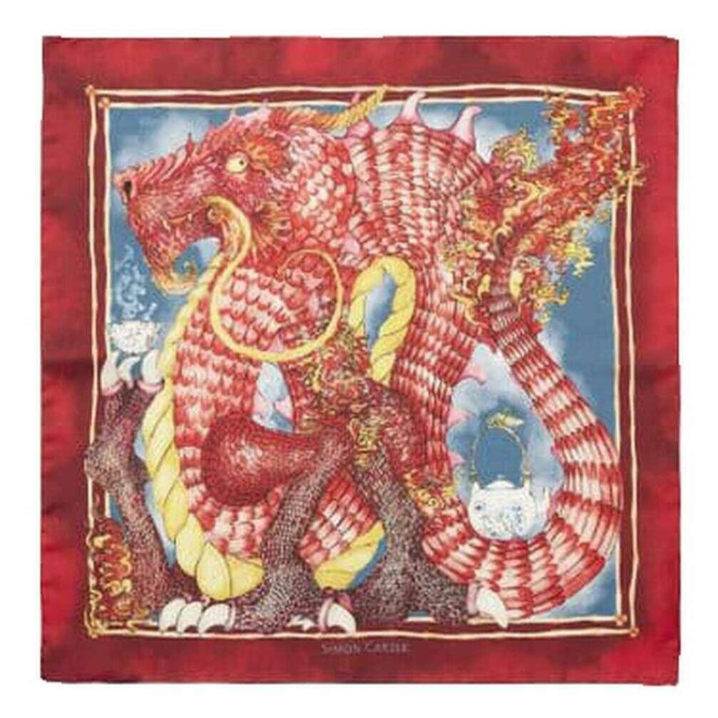 Simon Carter Drachen-Einstecktuch – Rot/Blau/Gelb