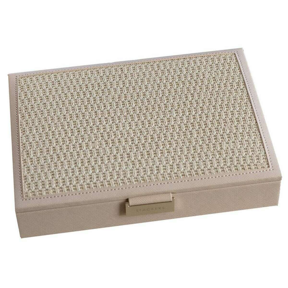 Der Deckel dieses klassischen Schmuckkästchens besteht aus rosafarbenem Kunstleder und Samt Stackers ist perfekt für Frauen und ein Muss. Es misst 4,7 cm (Höhe) x 25 cm (Breite) x 18 cm (Tiefe). Alle Schmuckkästchen werden komplett mit einer Stapelverpackung geliefert. Die Stackers Klassischer Schmuckschatullendeckel – Blush Pink Bast verfügt über ein wunderschönes rosa Bastdesign. Dieser Schmuckkästchendeckel ist perfekt für die Aufbewahrung all Ihrer Schmuckstücke! Wird komplett mit Abschnitten in mehreren Größen für Ringe, Ohrringe, Armbänder und Halsketten geliefert.