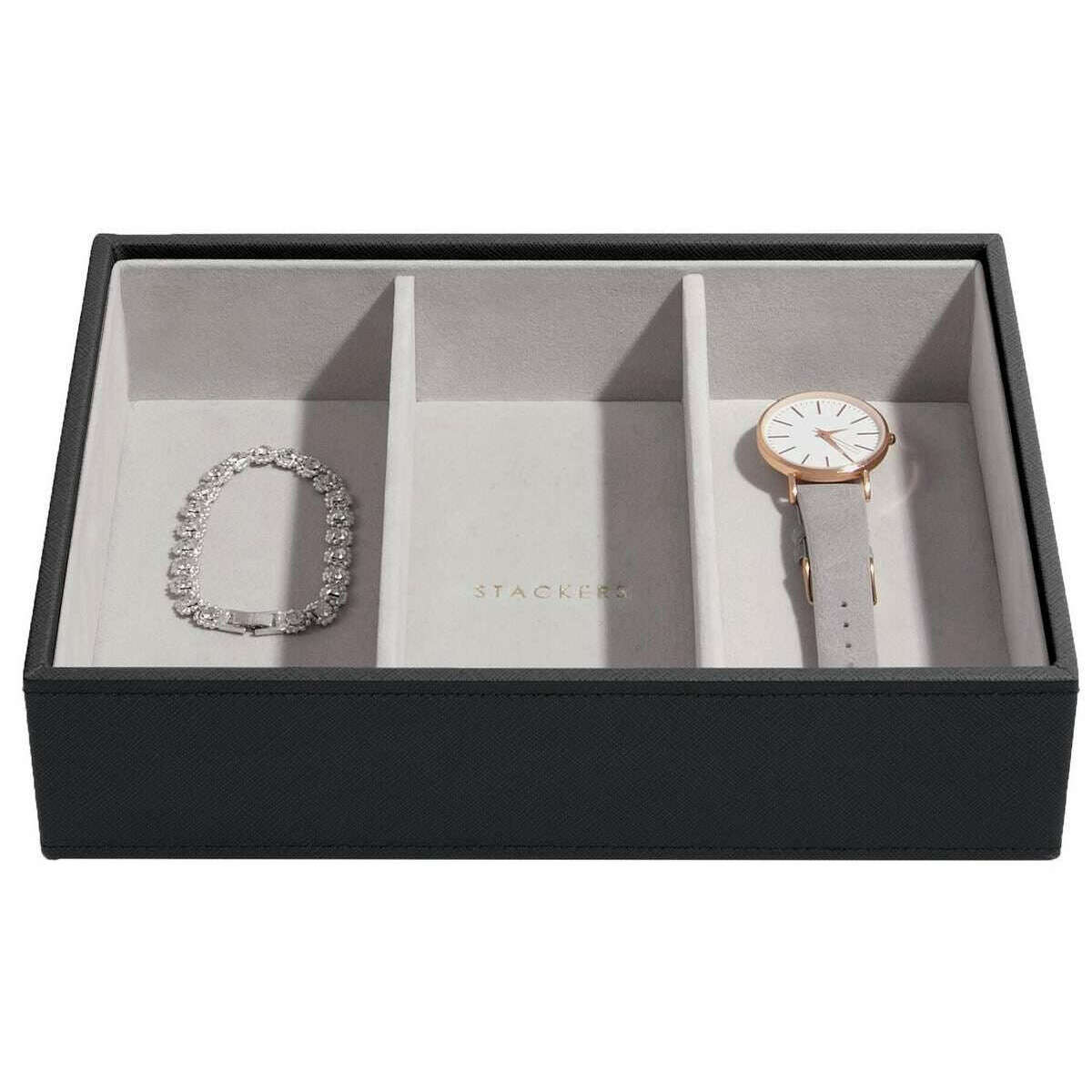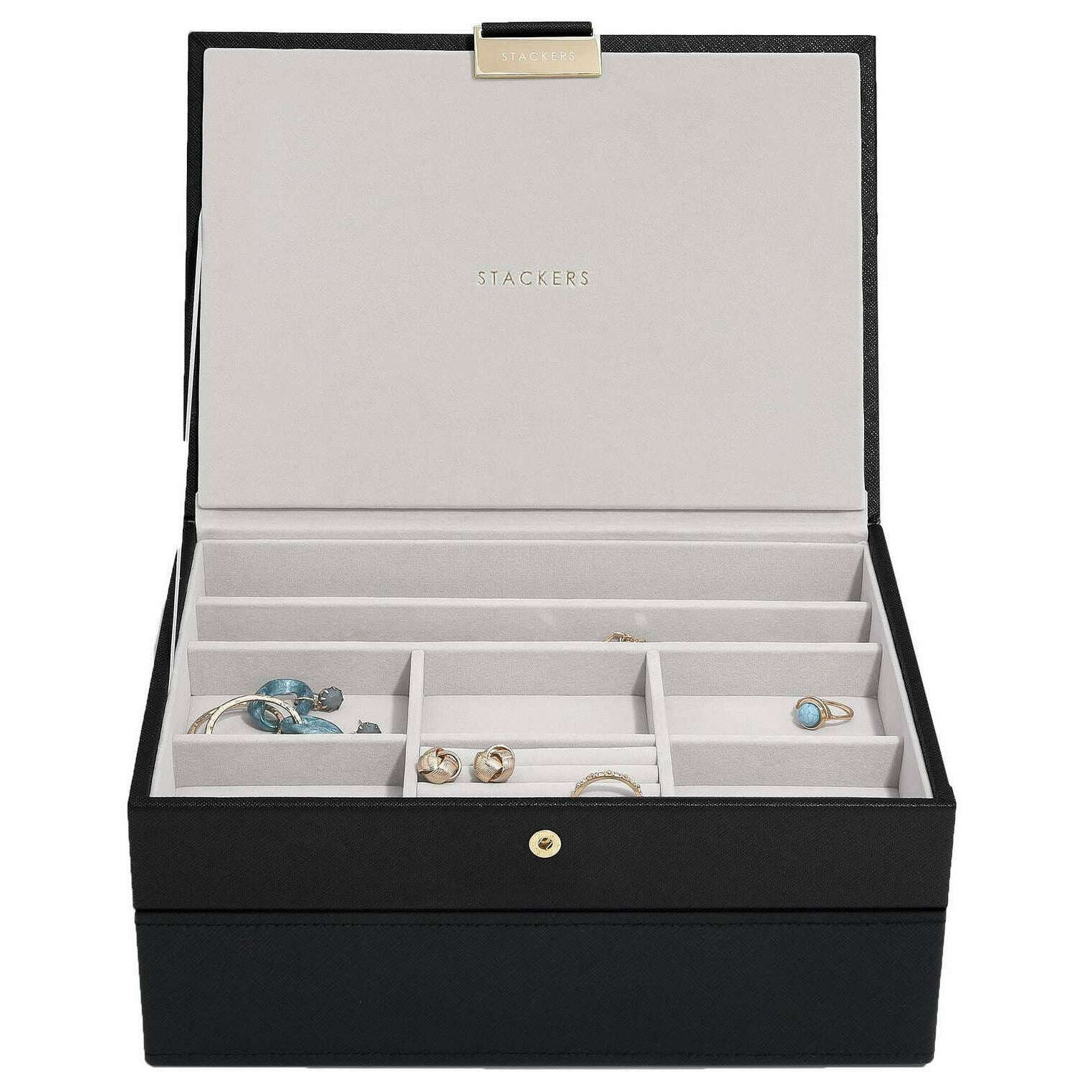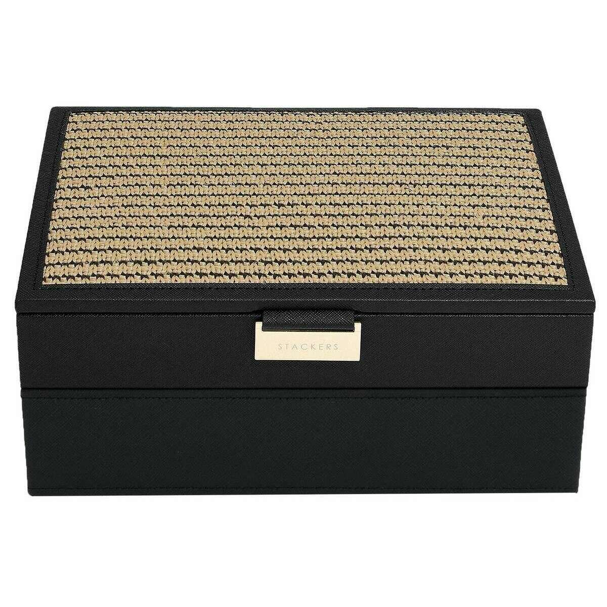 Stackers Klassisches 2er-Set Schmuckkästchen – Schwarzer Bast