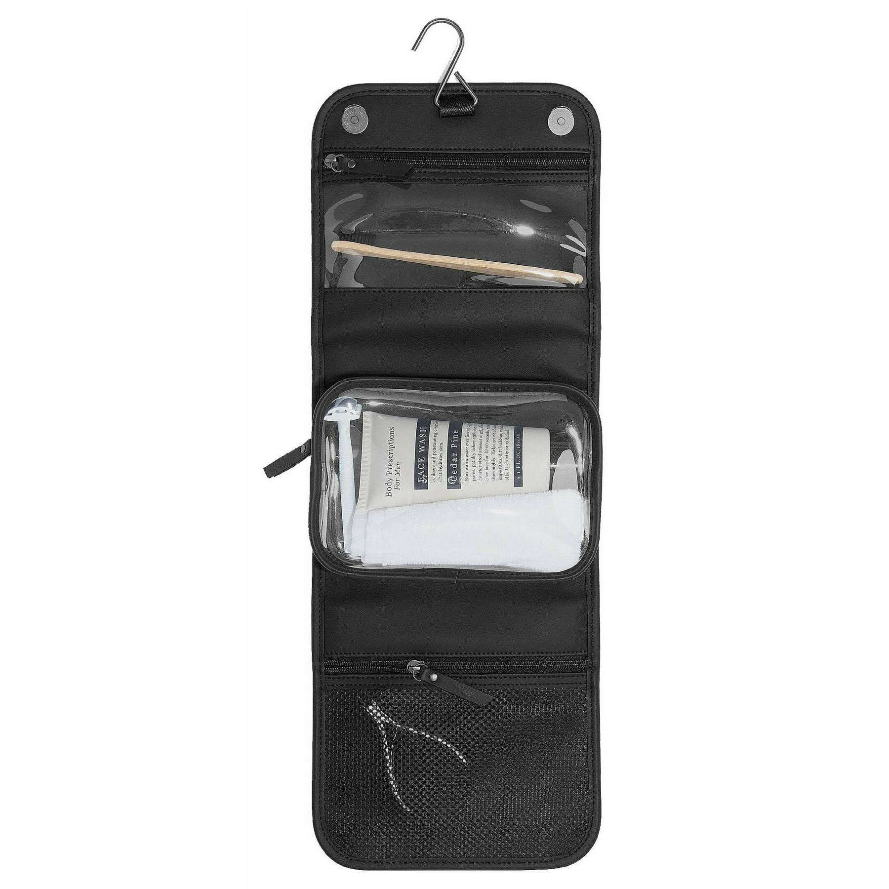 • 2 Innenfächer mit Reißverschluss, herausnehmbarer, durchsichtiger Kulturbeutel, Haken zum Aufhängen