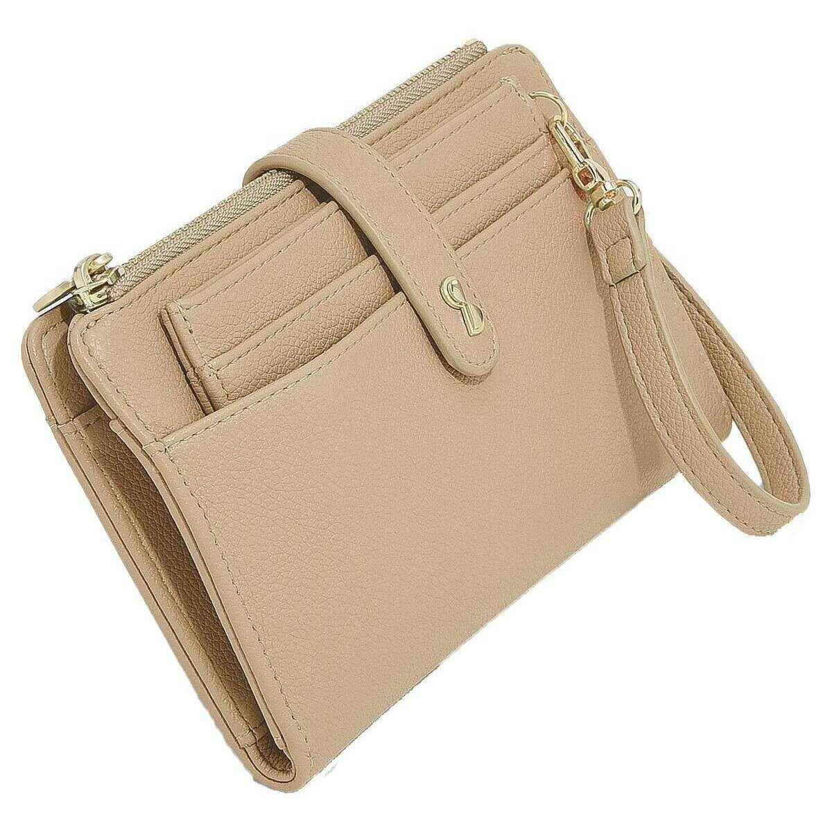 • Externes Handyfach, 6 Kartenfächer, Kosmetikspiegel, abnehmbares Münzfach mit Reißverschluss, abnehmbare Handschlaufe, Druckknopfverschluss
