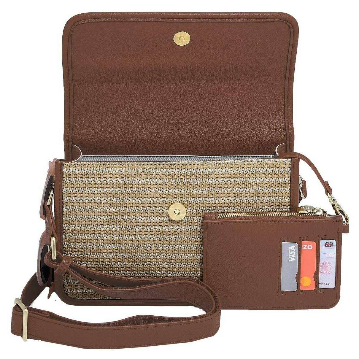 Perfekt für Frauen ist das hier Stackers Hellbraune Bast-Umhängetasche, ebenfalls aus Bast-Effekt und Kunstleder gefertigt. Es misst 17 cm (Höhe) x 7,5 cm (Breite) x 25 cm (Tiefe). Alle Taschen werden komplett in einer Stapelverpackung geliefert. Die Stackers Bast-Umhängetasche – Hellbraun Raffia ist ein Muss für unterwegs! Diese einzigartige und trendige Umhängetasche aus hellbraunem Bast verfügt über mehrere Taschen, einen stapelbaren Kosmetikspiegel und ein herausnehmbares Kartenfach. Perfekt für den täglichen Gebrauch mit seinem abnehmbaren und verstellbaren Umhängeriemen.