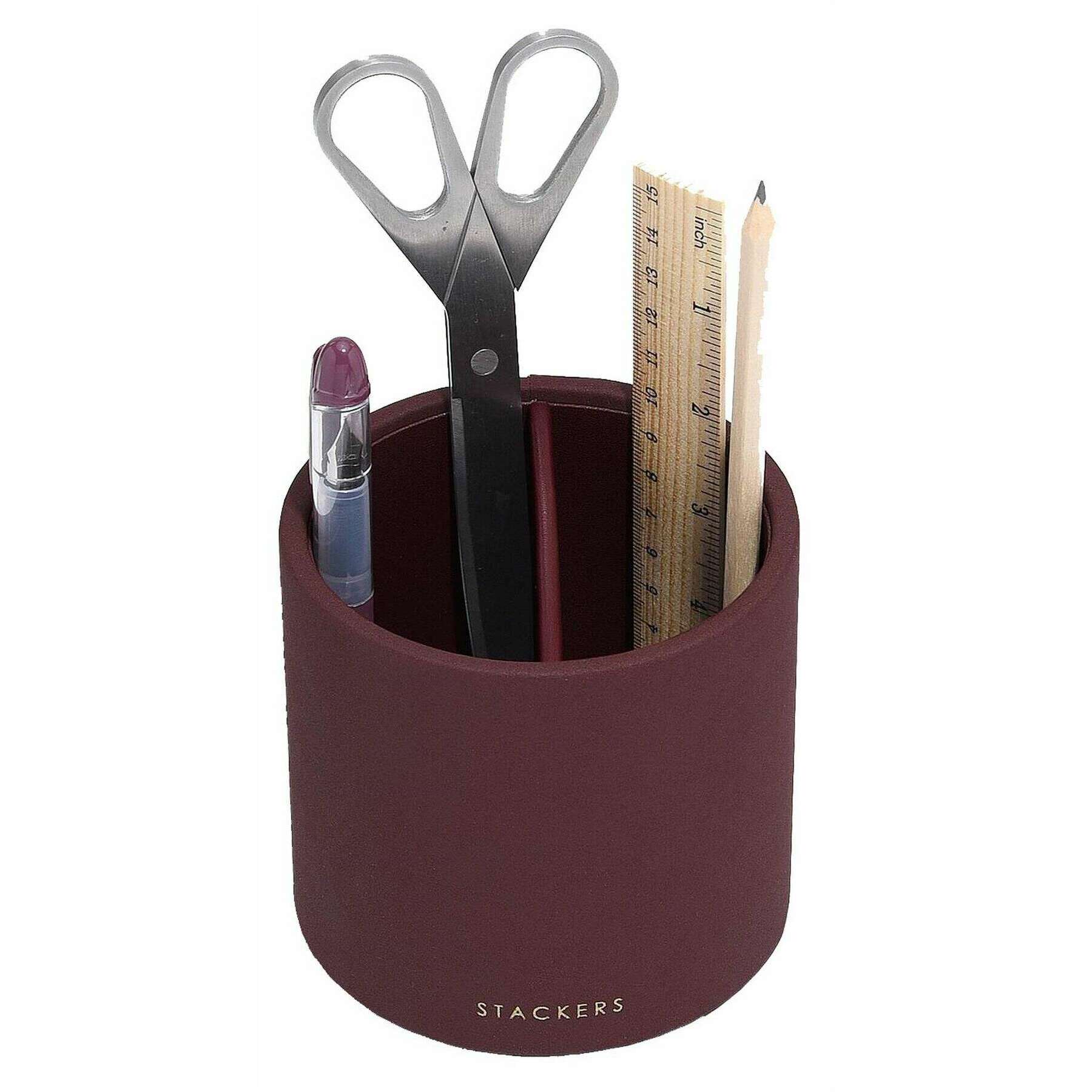Designer Stackers hat Ihnen dieses Damen-Schreibtischaccessoire aus Kunstleder in granatroten Burgundertönen präsentiert. Es misst 14,3 cm (Höhe) x 10,7 cm (Breite) x 10,7 cm (Tiefe). Alle Schreibtischzubehörteile werden komplett in einer Staplerverpackung geliefert. Die Stackers Der Schreibwarentopf – Garnet Burgundy ist ein Muss für jeden Schreibtisch! Dieser burgunderfarbene Bürotopf eignet sich perfekt zum Aufbewahren von Schreibwaren und verfügt sogar über eine versteckte Ablage für kleinere Gegenstände darunter.