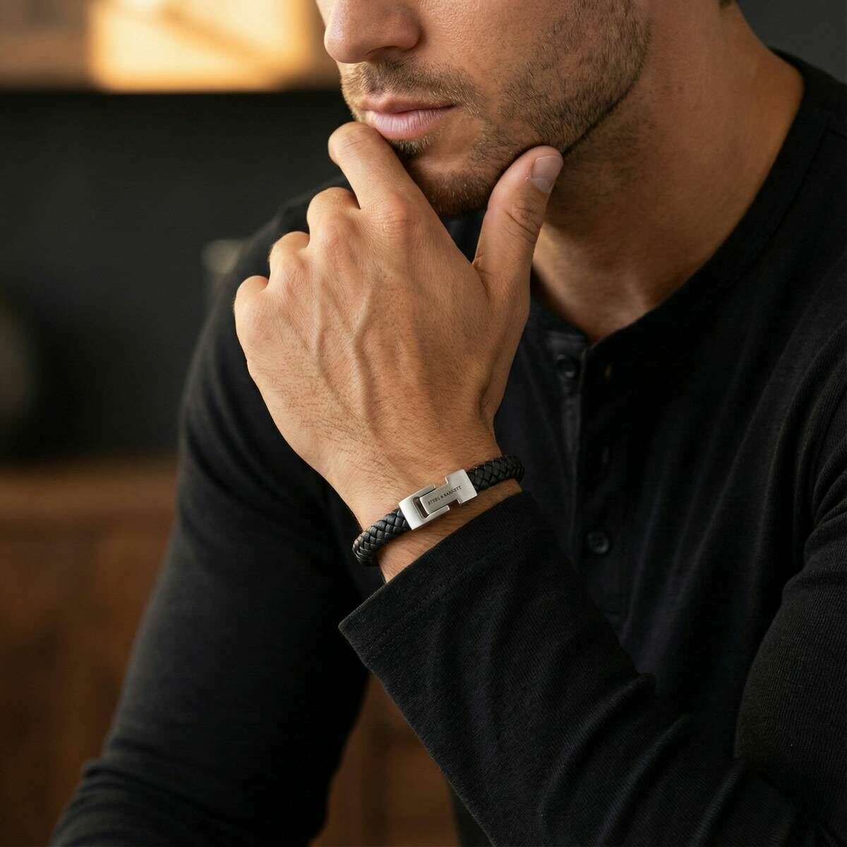 Steel & Barnett Archie geflochtenes Lederarmband – Schwarz
