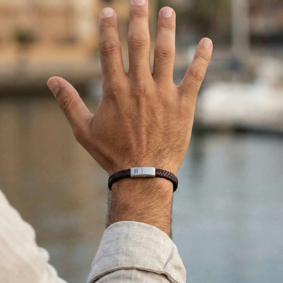 Designer Steel & Barnett hat Ihnen dieses Herrenarmband aus 100 % Rindsleder und Edelstahl in Vintage-Brauntönen präsentiert. Alle Armbänder werden komplett in einer Stahl- und Barnett-Verpackung geliefert. Das Steel & Barnett Riley Sleek Braided Leather Armband – Vintage Brown ist so gefertigt, dass es sowohl Stärke als auch Zuverlässigkeit verkörpert und ein raffiniertes Accessoire bietet, das für jede Sammlung geeignet ist. Das 6 mm schlanke Profil besteht zu 100 % aus echtem Rindsleder und verfügt über ein elegant geflochtenes Design, das subtile Raffinesse bietet, ohne Einbußen bei der Haltbarkeit hinnehmen zu müssen. A Die aus 316L-Edelstahl gefertigte Schließe aus gebürstetem Stahl bietet außergewöhnliche Widerstandsfähigkeit gegen Abnutzung und Korrosion, während der Magnetverschluss für einen sicheren und bequemen Sitz am Handgelenk sorgt. Dieses durchdacht gestaltete und mühelos stilvolle Armband ist die ideale Wahl für alle, die ein minimalistisches und dennoch elegantes Lederaccessoire suchen, das die Alltagskleidung mit dezenter Eleganz aufwertet.