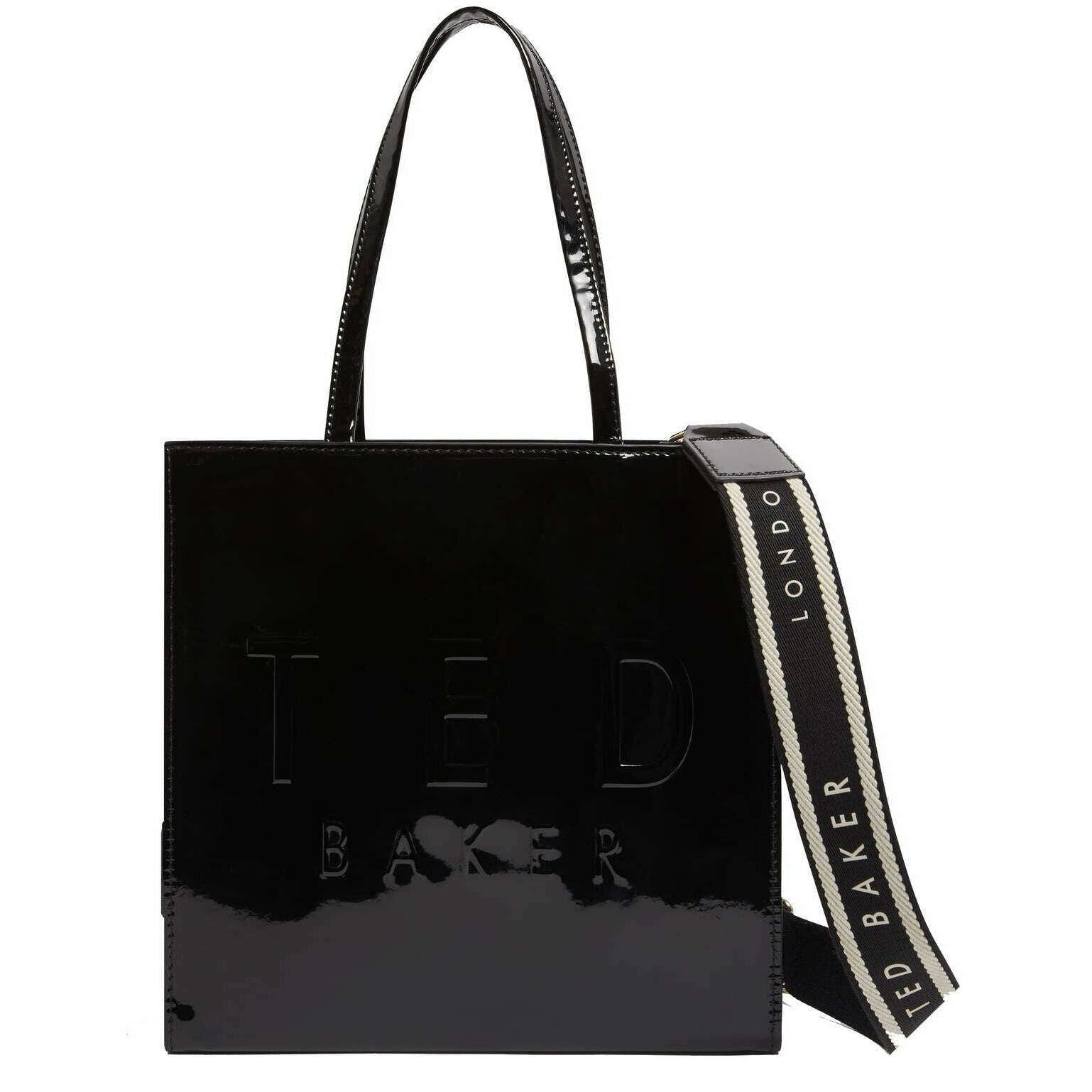 Diese gut verarbeitete Iconica-Webbandtasche für Damen von Ted Baker ist in der Farbe Schwarz erhältlich und besteht zu 100 % aus Polyurethan. Es misst 25 cm (Höhe) x 25 cm (Breite) x 6 cm (Tiefe). Alle Beutel werden komplett in einer Ted Baker-Verpackung geliefert. Die Ted Baker Die Iconica Webbing Small Icon Bag – Schwarz verfügt über ein hochglänzendes Finish mit einem wunderschönen und auffälligen mehrfarbigen Webriemen und bietet Ihnen ein elegantes, modernes Accessoire mit einer perfekten Balance aus Eleganz und modernem Flair. Zwei Tragegriffe an der Oberseite ermöglichen ein klassisches Tragen. Auf der Vorderseite ist ein geprägtes Branding sowie auf dem Riemen ein auffälliges Branding zu sehen. Tragen Sie diese Tasche nahtlos in Ihren Alltag, passt zu einem lässigen Look und bietet einen eleganteren Look.