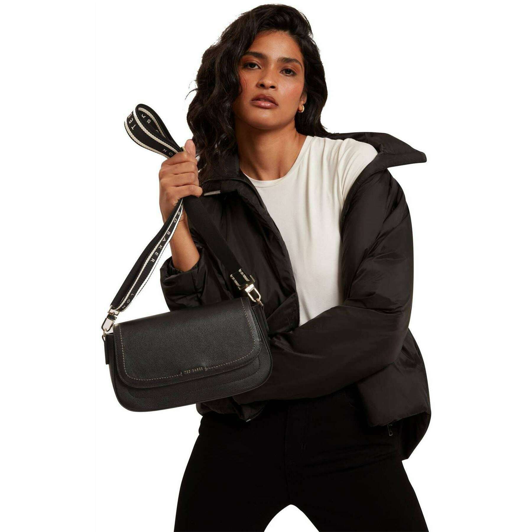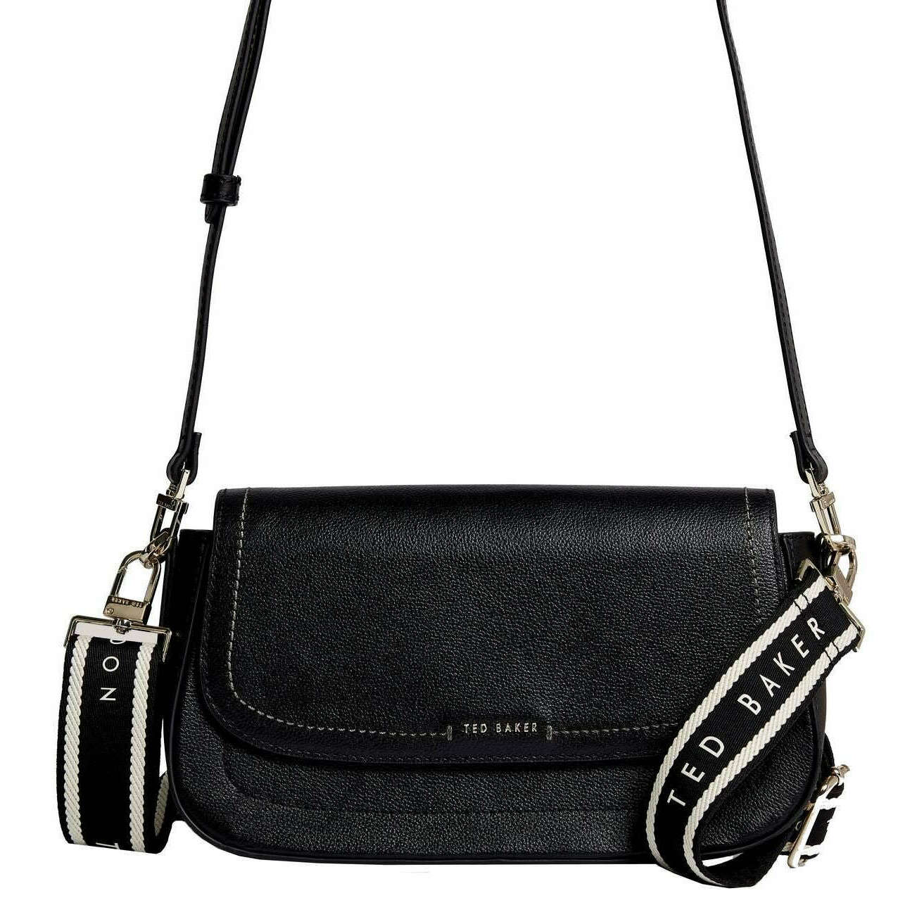 Ted Baker Louiize Leder-Umhängetasche mit Klappe – Schwarz