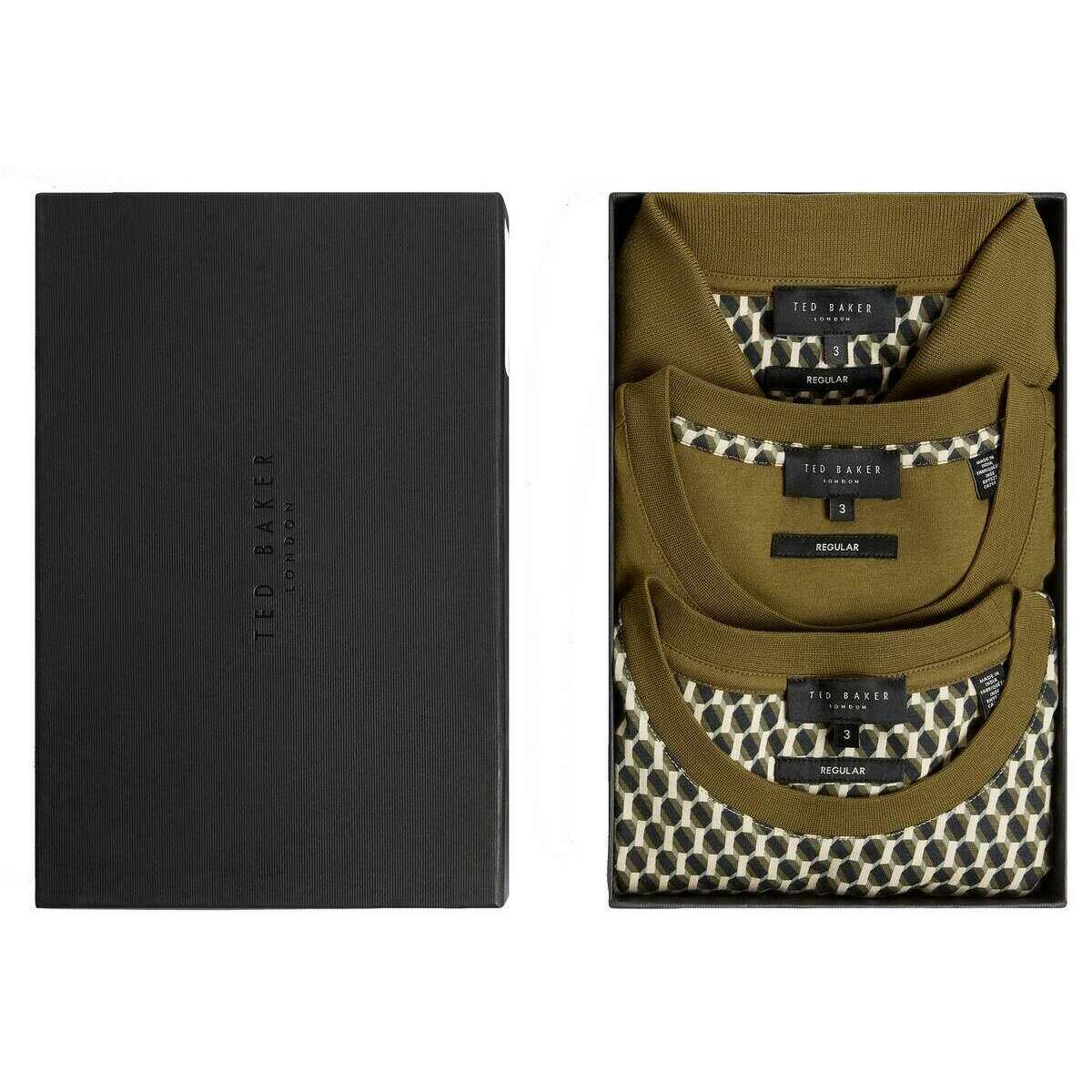 Ted Baker Sangs 3 Pack geometrisches Trikot T-Shirt - Olivengrün