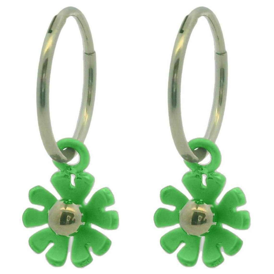 Ti2 Titanium Zehn Blütenblütencharme -Reifen Ohrringe - grün