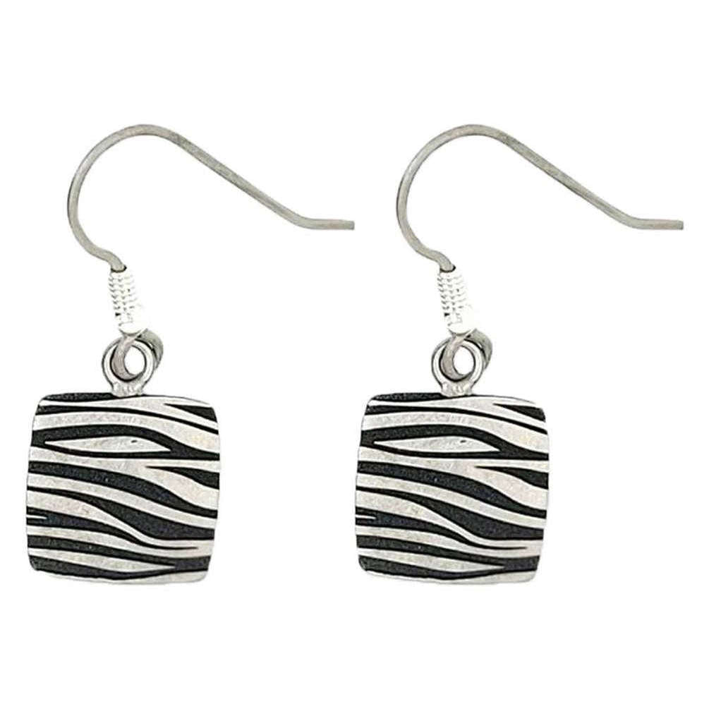 Ti2 Titanium Zebra -Druckquadrat -Drop -Ohrringe - Silber/Schwarz