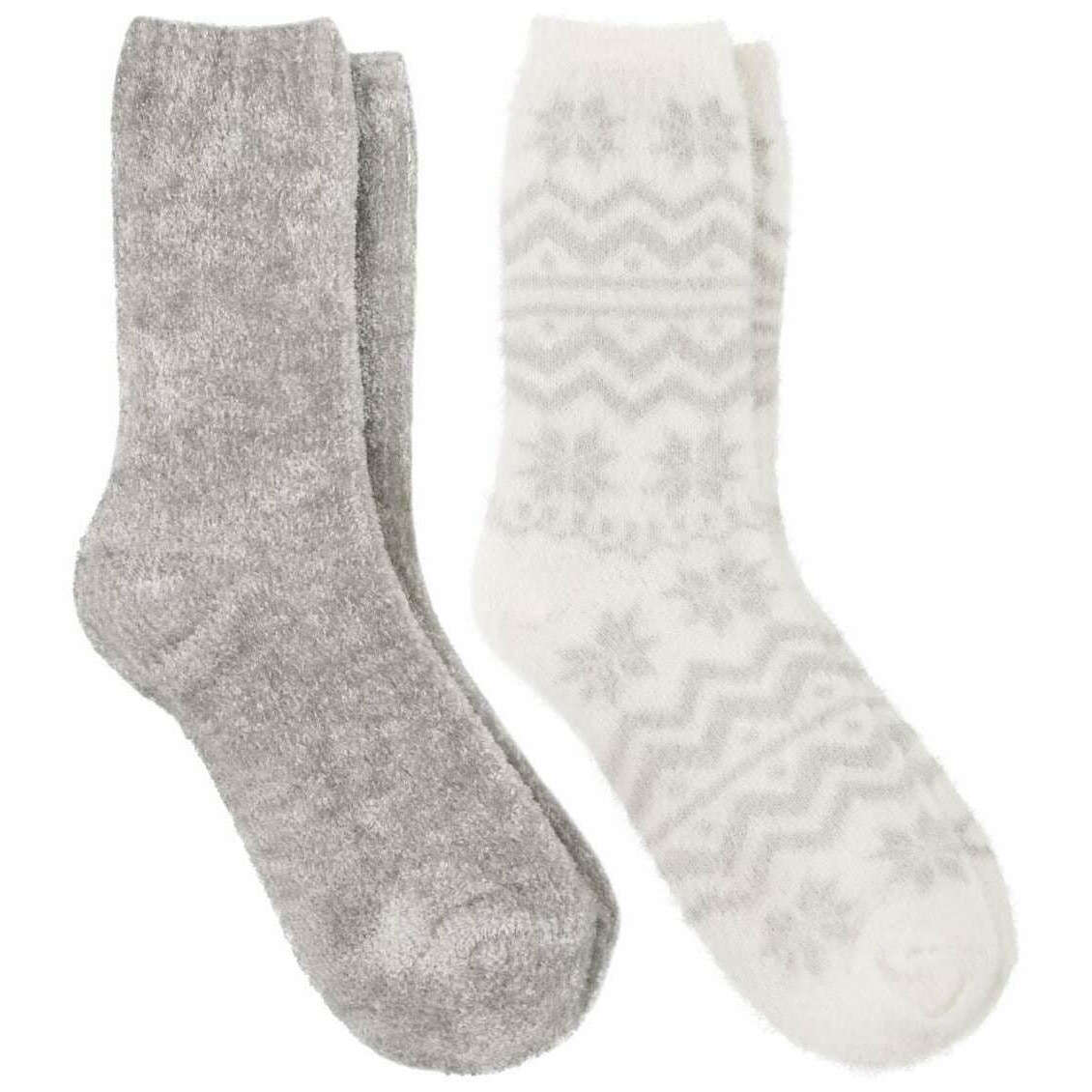 Totes Toasties 2er-Pack superweiche Fair-Isle- und Chenille-Bettsocken – Grau/Weiß