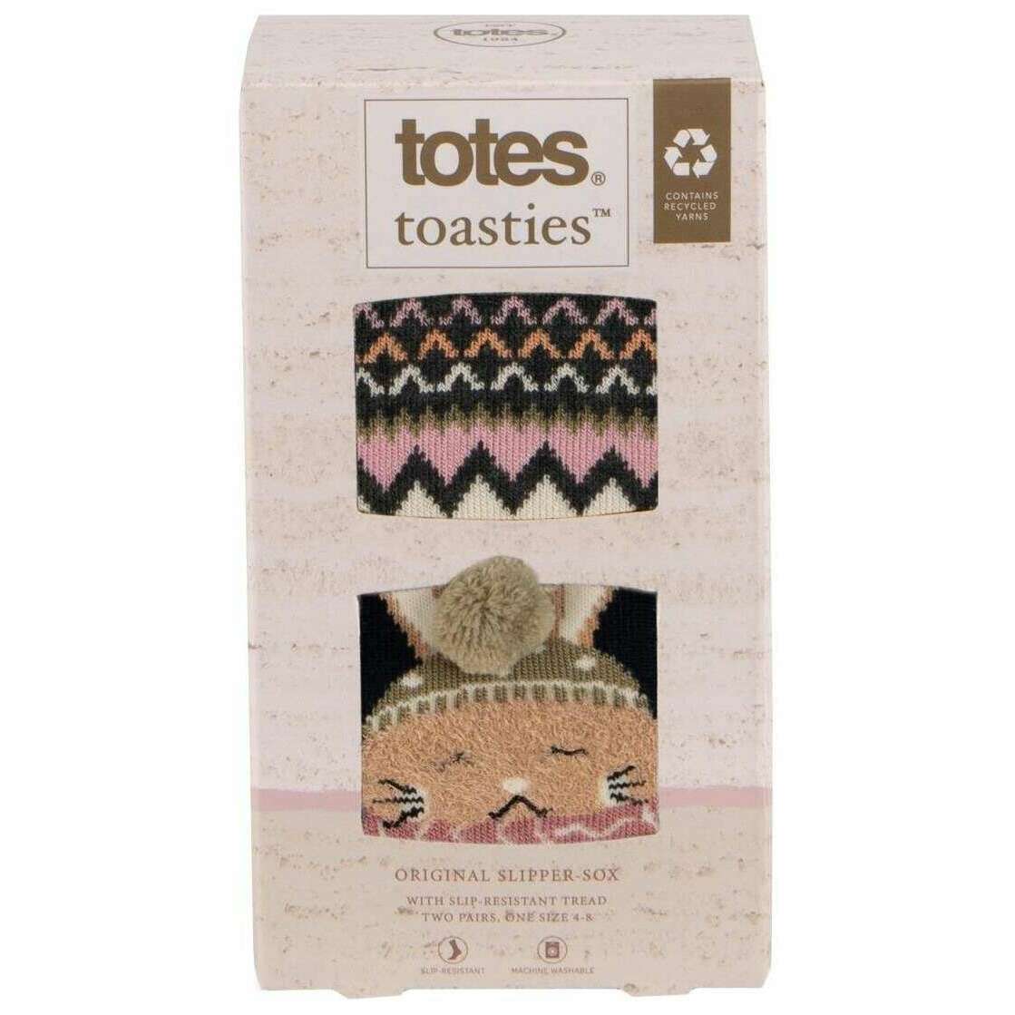 Totes Toasties 2 Pack Original -Slipper -Socken - Kaninchen/Faireisle Navy