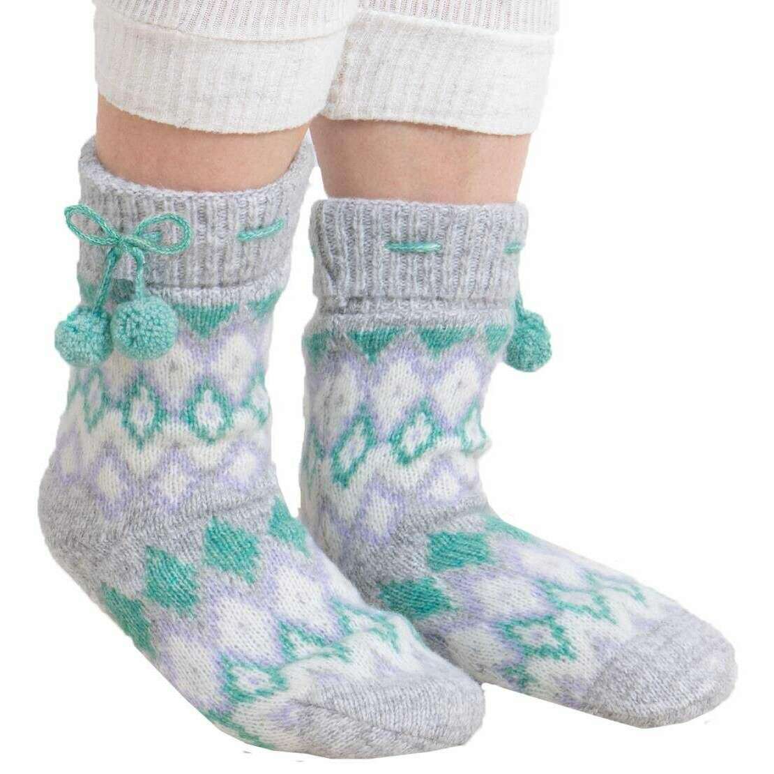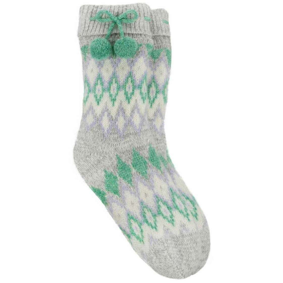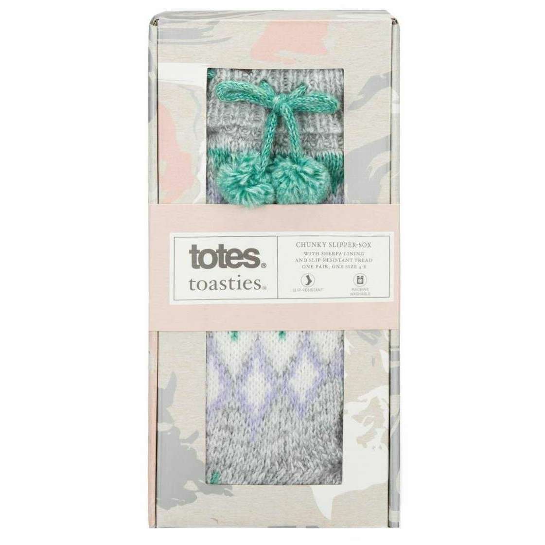 Totes Toasties Fair Isle Chenille Slipper Socken – Grau/Grün/Lila