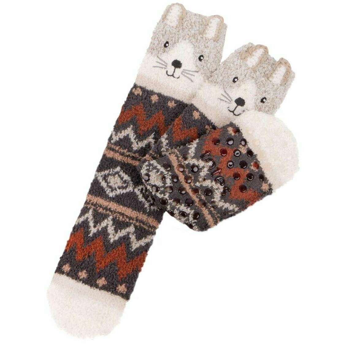 Totes Toasties Neuheit Super weiche Slipper Socken - Katze Brown
